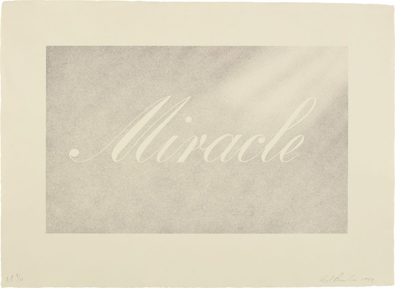 His most iconic works are at turns poetic and deadpan, epigrammatic text with nods to advertising copy, juxtaposed with imagery that is either cinematic and sublime or seemingly wry documentary. Whether the subject is his iconic Standard Gas Station or the Hollywood Sign, a parking lot or highway, his works are a distillation of American idealism, echoing the expansive Western landscape and optimism unique to postwar America.