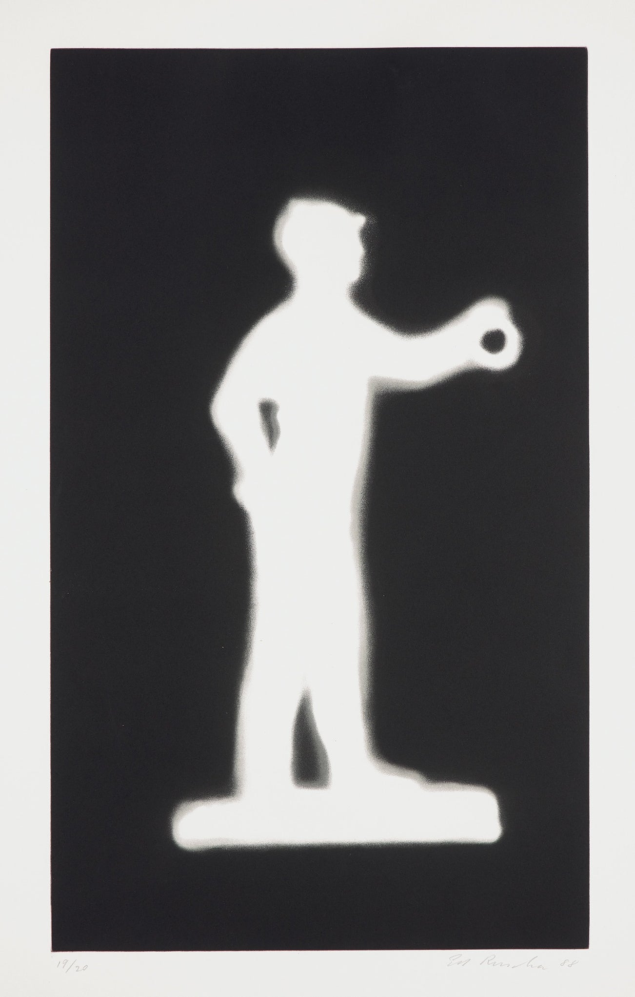 His most iconic works are at turns poetic and deadpan, epigrammatic text with nods to advertising copy, juxtaposed with imagery that is either cinematic and sublime or seemingly wry documentary. Whether the subject is his iconic Standard Gas Station or the Hollywood Sign, a parking lot or highway, his works are a distillation of American idealism, echoing the expansive Western landscape and optimism unique to postwar America.