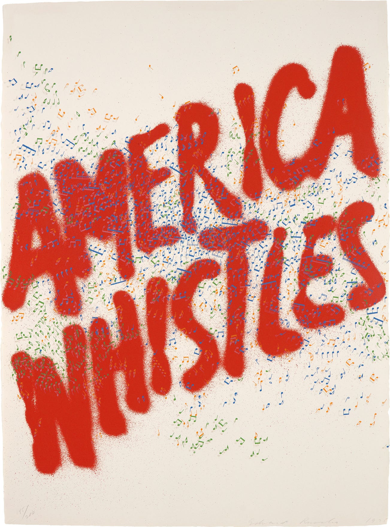 His most iconic works are at turns poetic and deadpan, epigrammatic text with nods to advertising copy, juxtaposed with imagery that is either cinematic and sublime or seemingly wry documentary. Whether the subject is his iconic Standard Gas Station or the Hollywood Sign, a parking lot or highway, his works are a distillation of American idealism, echoing the expansive Western landscape and optimism unique to postwar America.