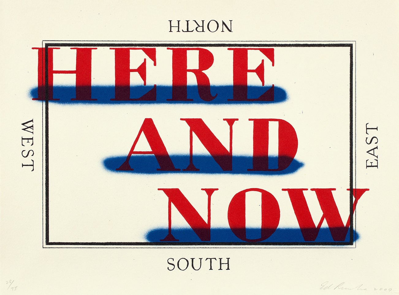 His most iconic works are at turns poetic and deadpan, epigrammatic text with nods to advertising copy, juxtaposed with imagery that is either cinematic and sublime or seemingly wry documentary. Whether the subject is his iconic Standard Gas Station or the Hollywood Sign, a parking lot or highway, his works are a distillation of American idealism, echoing the expansive Western landscape and optimism unique to postwar America.