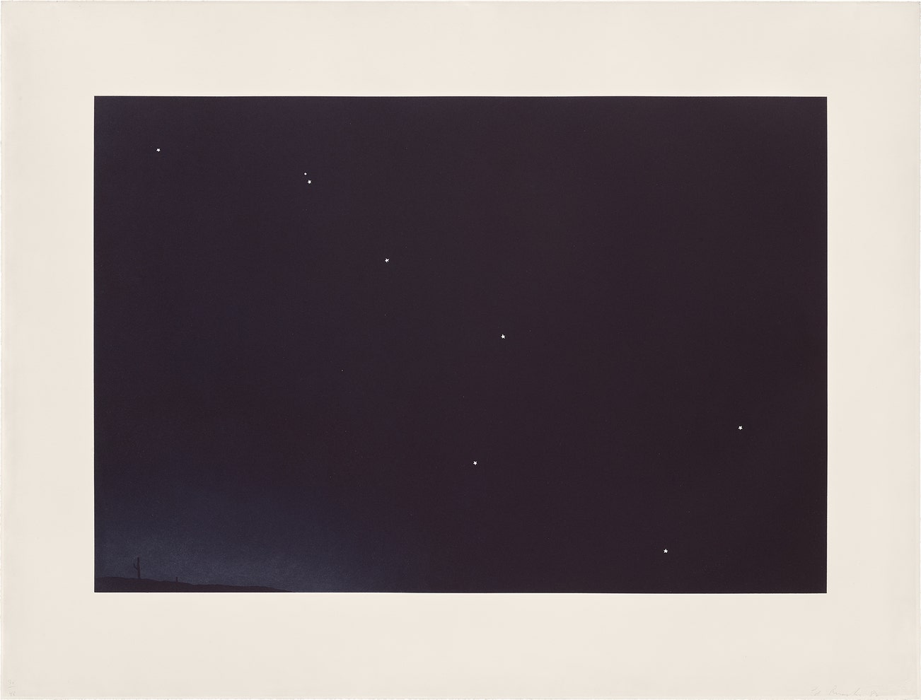 His most iconic works are at turns poetic and deadpan, epigrammatic text with nods to advertising copy, juxtaposed with imagery that is either cinematic and sublime or seemingly wry documentary. Whether the subject is his iconic Standard Gas Station or the Hollywood Sign, a parking lot or highway, his works are a distillation of American idealism, echoing the expansive Western landscape and optimism unique to postwar America.