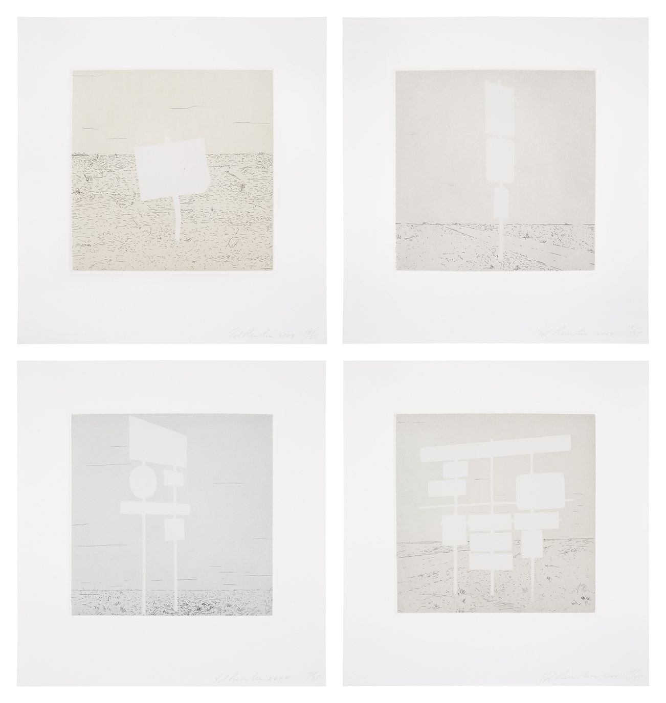 His most iconic works are at turns poetic and deadpan, epigrammatic text with nods to advertising copy, juxtaposed with imagery that is either cinematic and sublime or seemingly wry documentary. Whether the subject is his iconic Standard Gas Station or the Hollywood Sign, a parking lot or highway, his works are a distillation of American idealism, echoing the expansive Western landscape and optimism unique to postwar America.