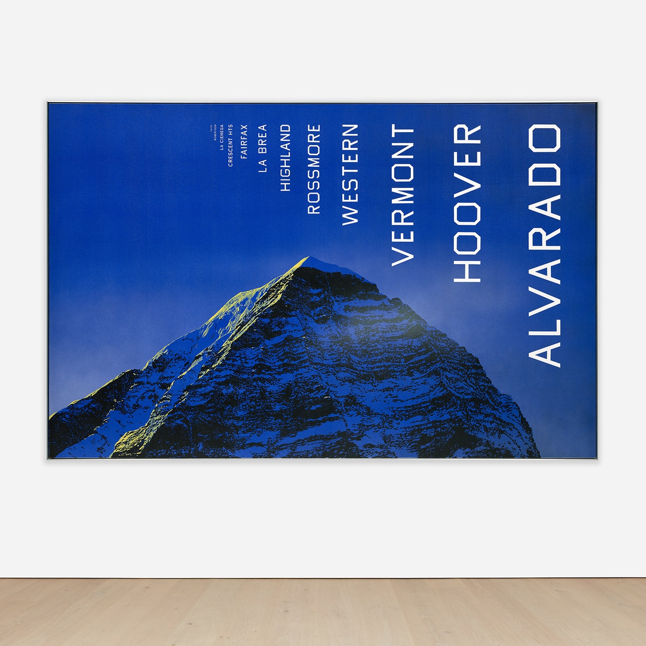 His most iconic works are at turns poetic and deadpan, epigrammatic text with nods to advertising copy, juxtaposed with imagery that is either cinematic and sublime or seemingly wry documentary. Whether the subject is his iconic Standard Gas Station or the Hollywood Sign, a parking lot or highway, his works are a distillation of American idealism, echoing the expansive Western landscape and optimism unique to postwar America.