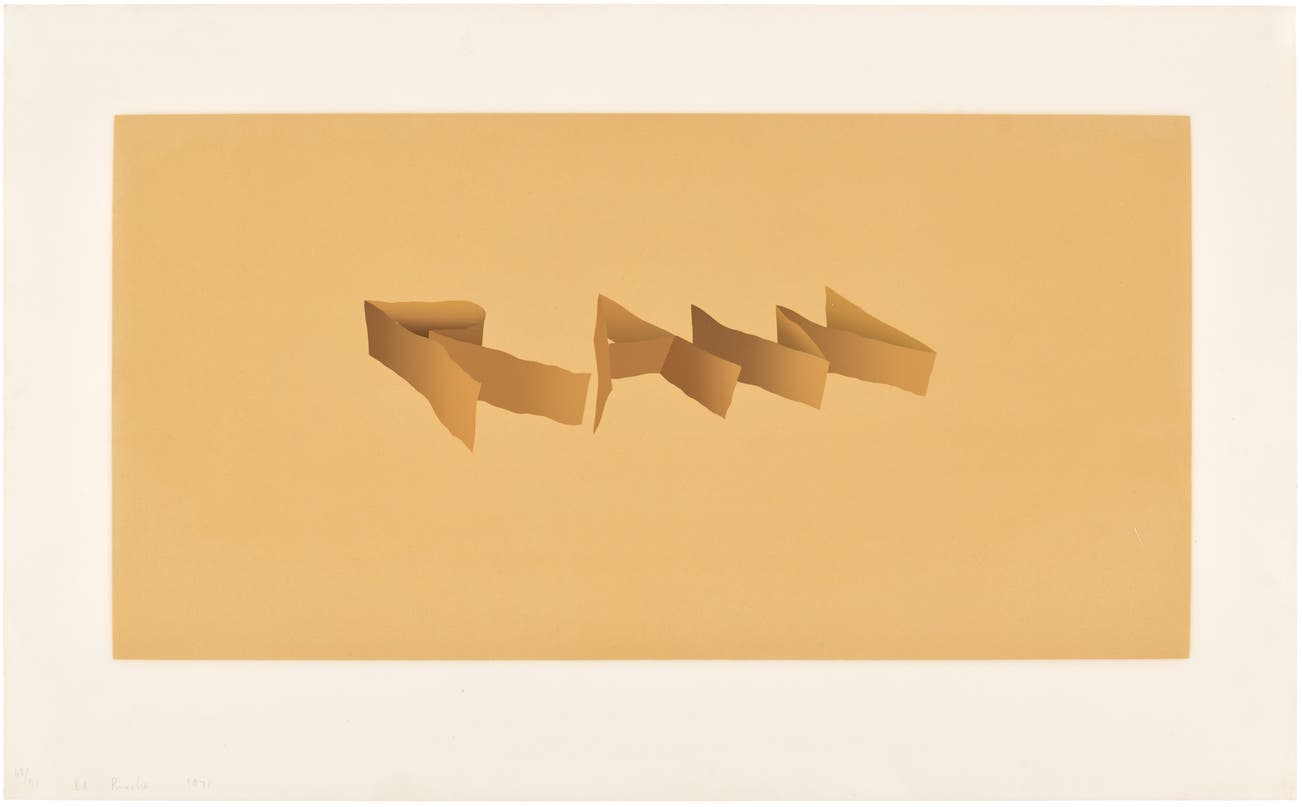 His most iconic works are at turns poetic and deadpan, epigrammatic text with nods to advertising copy, juxtaposed with imagery that is either cinematic and sublime or seemingly wry documentary. Whether the subject is his iconic Standard Gas Station or the Hollywood Sign, a parking lot or highway, his works are a distillation of American idealism, echoing the expansive Western landscape and optimism unique to postwar America.