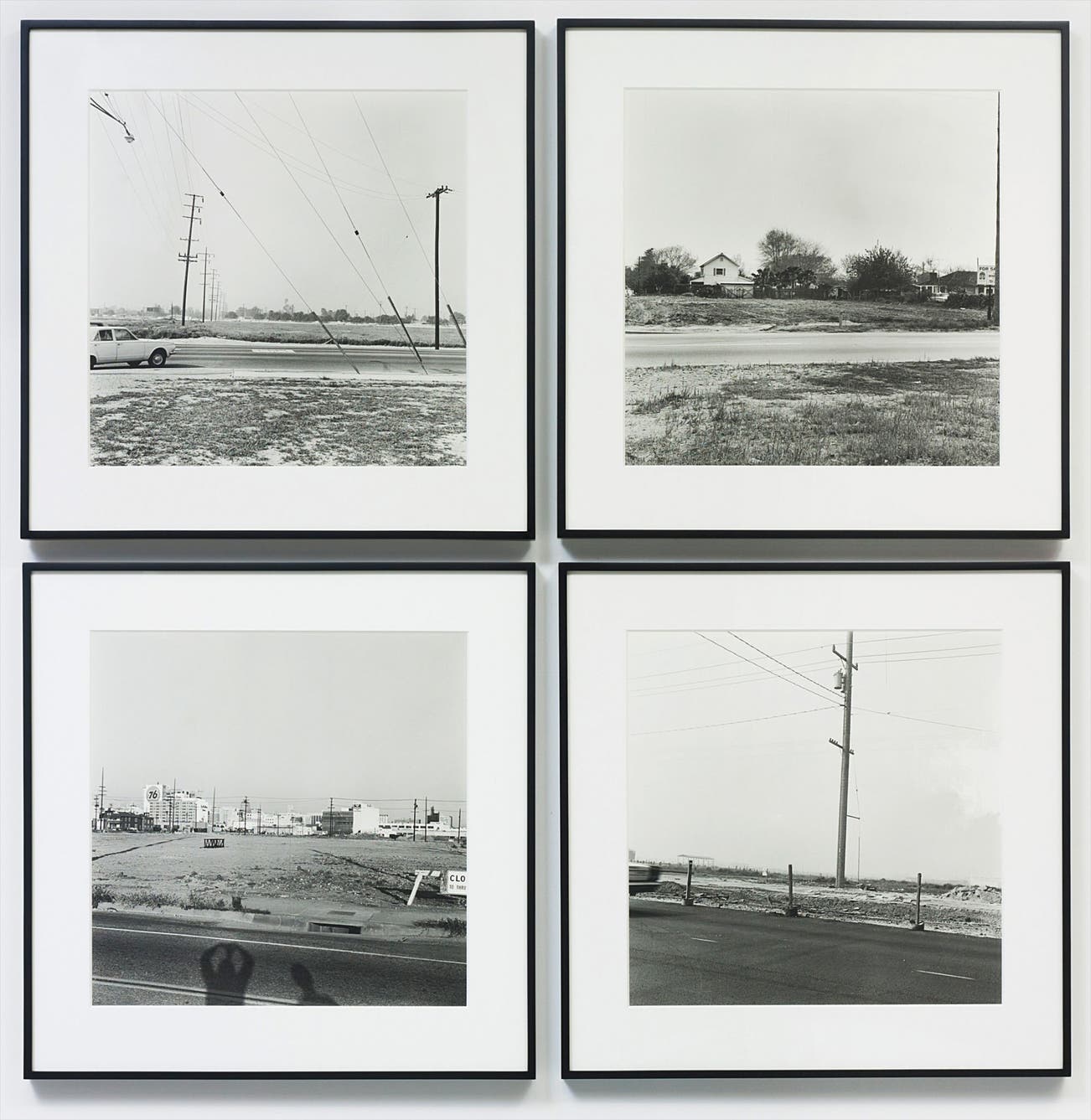 "Ruscha’s relationship to photography is complex and ambivalent, and the work is difficult to define. The photographs’ amateurish quality and snapshot size intrigued his contemporaries.Neither purely documentary nor purely artistic, their subject matter was stereotypical and banal, with motifs drawn mostly from ordinary outdoor sites in Southern California or the western United States. This, along with their presentation as strings of consecutive images, created a mythical road-movie or photo novel effect laced with Beat Generation innuendo."