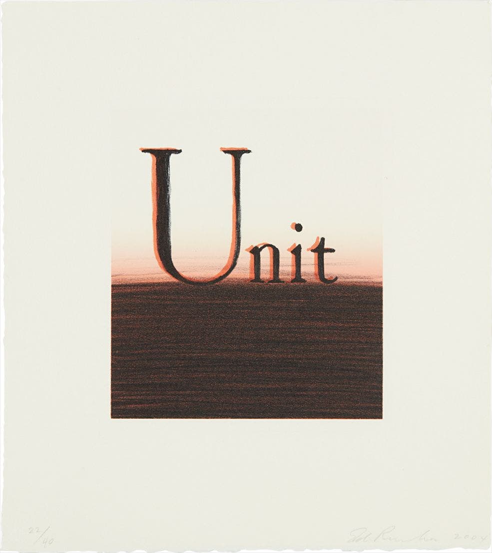 His most iconic works are at turns poetic and deadpan, epigrammatic text with nods to advertising copy, juxtaposed with imagery that is either cinematic and sublime or seemingly wry documentary. Whether the subject is his iconic Standard Gas Station or the Hollywood Sign, a parking lot or highway, his works are a distillation of American idealism, echoing the expansive Western landscape and optimism unique to postwar America.