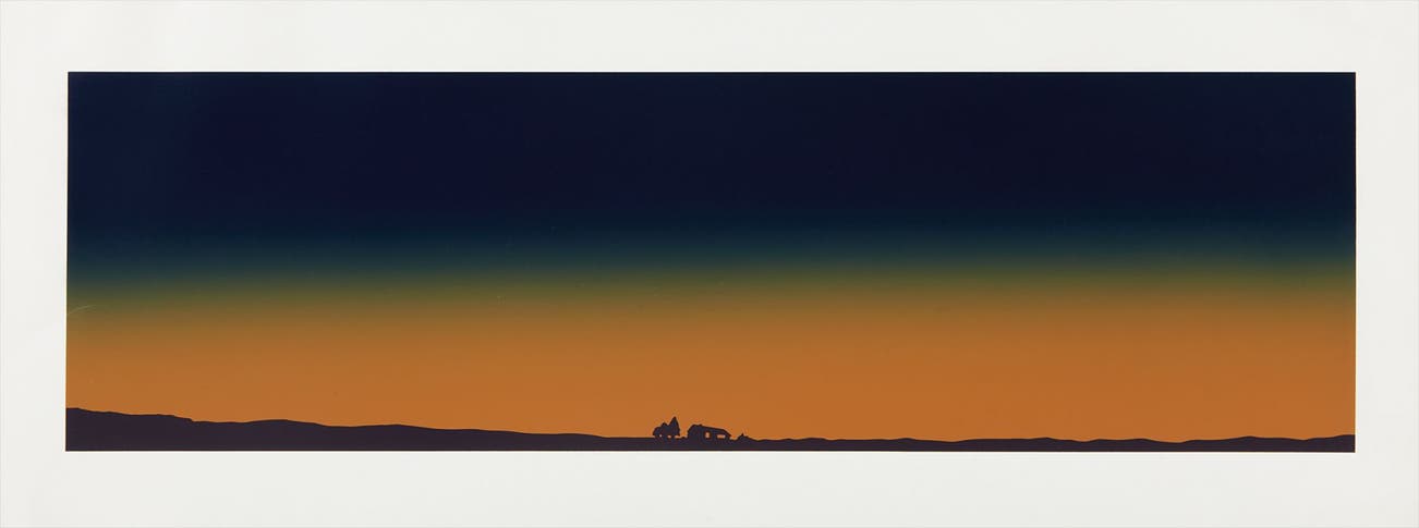 His most iconic works are at turns poetic and deadpan, epigrammatic text with nods to advertising copy, juxtaposed with imagery that is either cinematic and sublime or seemingly wry documentary. Whether the subject is his iconic Standard Gas Station or the Hollywood Sign, a parking lot or highway, his works are a distillation of American idealism, echoing the expansive Western landscape and optimism unique to postwar America.