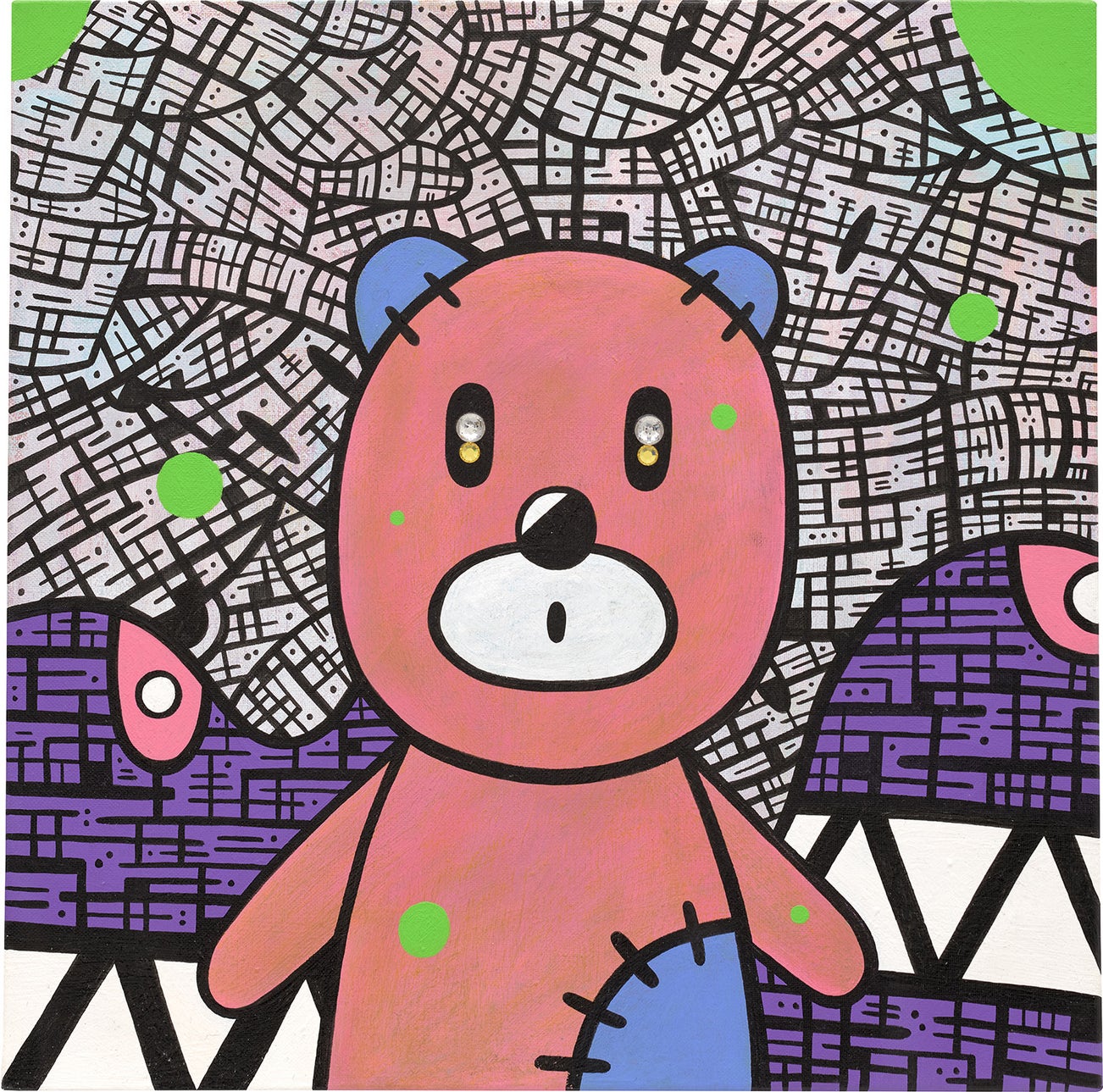 oil, acrylic, ink and Swarovski crystal on canvas