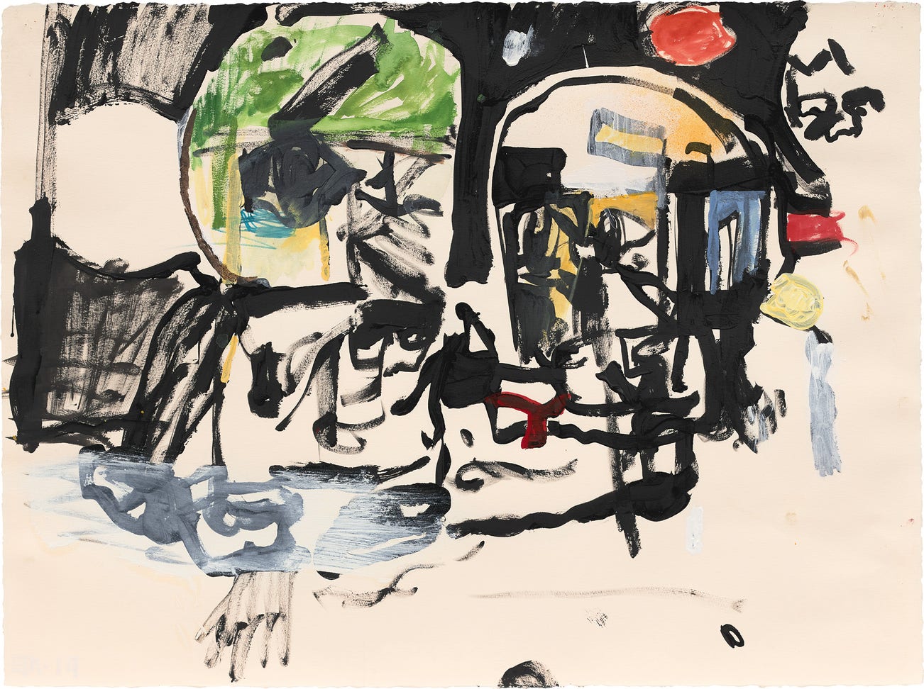 acrylic, watercolour, spray paint and marker on paper