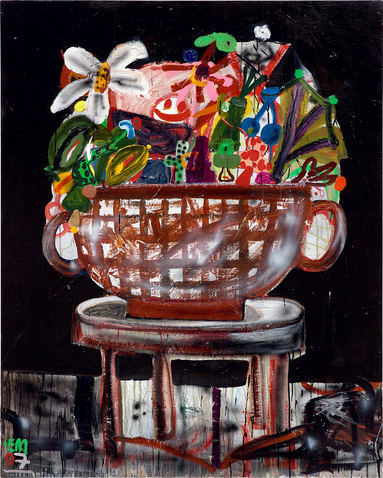 signed with the artist's initials and dated "EM 07" lower left; signed, titled and dated ""Yours for the Taking" Eddie Martinez 2007" on the reverse; further signed and dated "Eddie Martinez 2007" on the stretcher