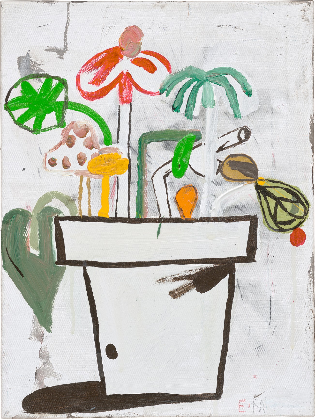 signed with the artist's initials 'E.M.' lower right; signed, titled and dated 'E. MARTINEZ 2009, "VEJBY WHITES"' on the overlap