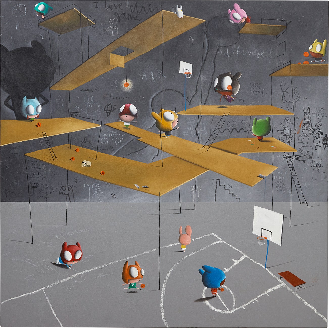 signed 'Plans' lower centre; titled 'I love this game' upper centre; signed, titled and dated 'I love this game! Plans 2020' on the reverse