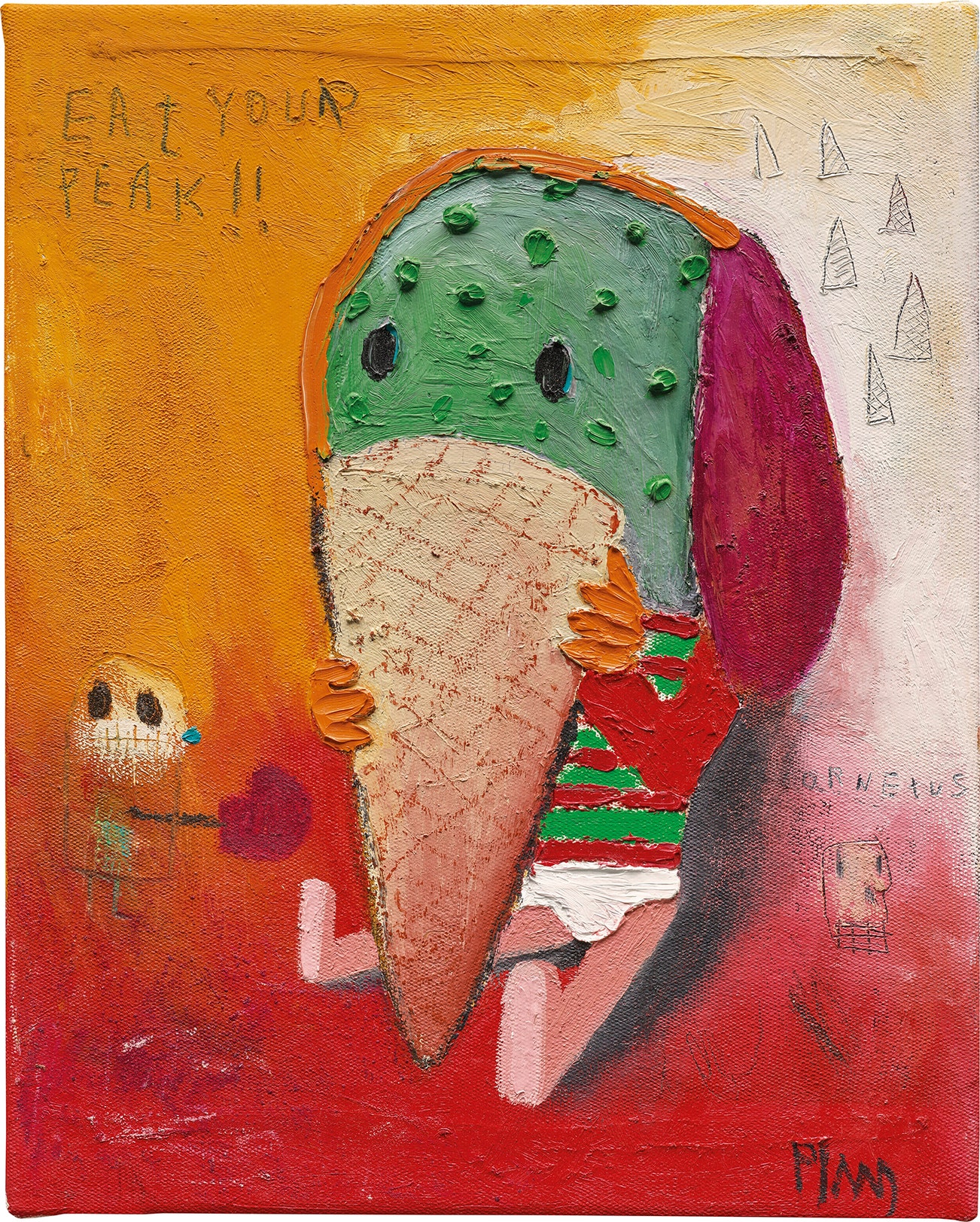 signed 'PLANS' lower right; titled '"EAt YOUR PEAK!!"' upper left