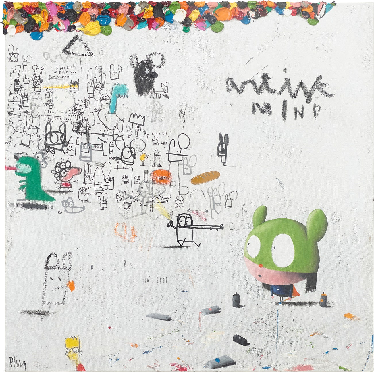 acrylic, pastel, graphite and marker on canvas