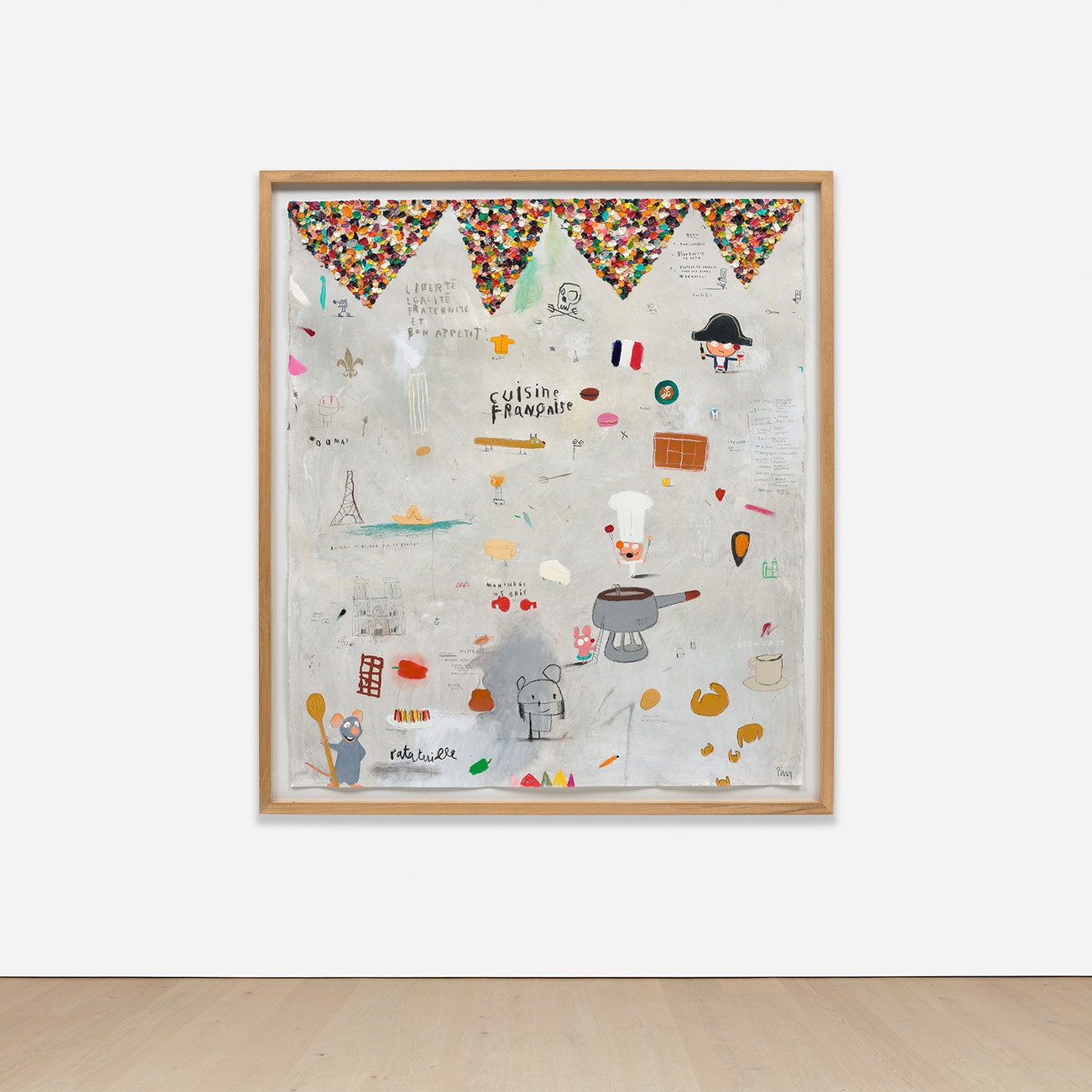 acrylic, gouache, graphite and oilstick on paper