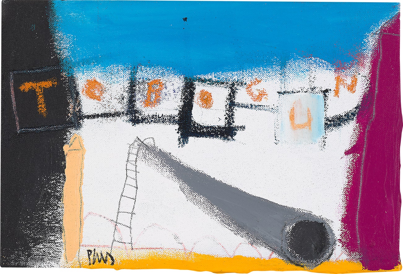 signed 'Plans' lower left; further titled '"TOBOGUN"' on the stretcher