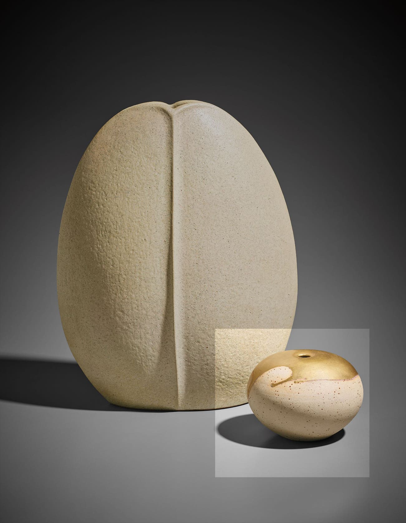 Stoneware, iron speckles in the body, gold splash on the shoulder.