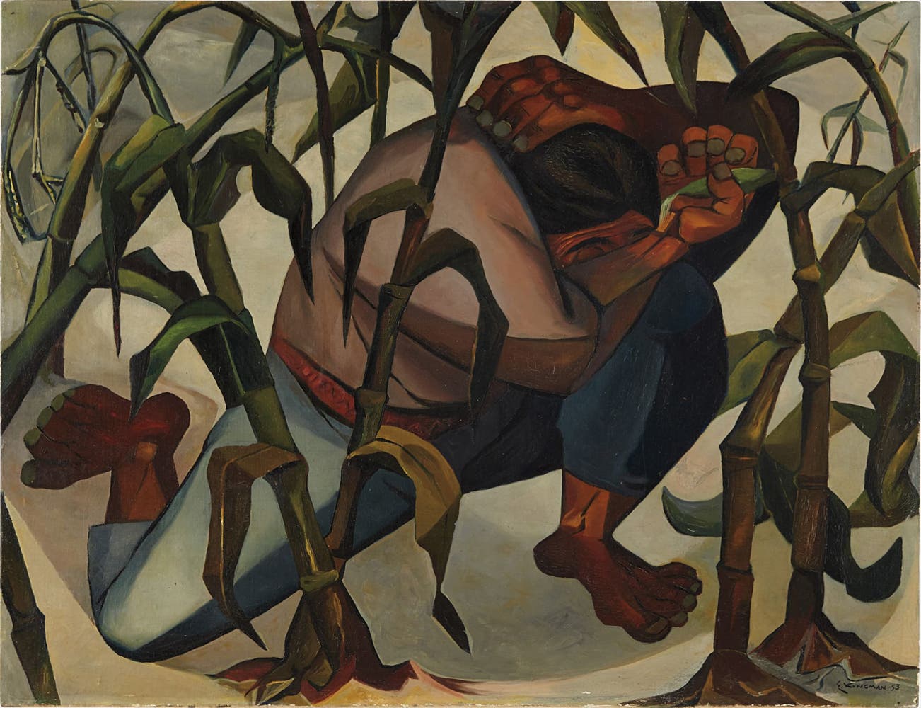 Signed and dated "E. Kingman- 53" lower right; further signed, titled and dated "La Helada Eduardo Kingman 1953" on the reverse.