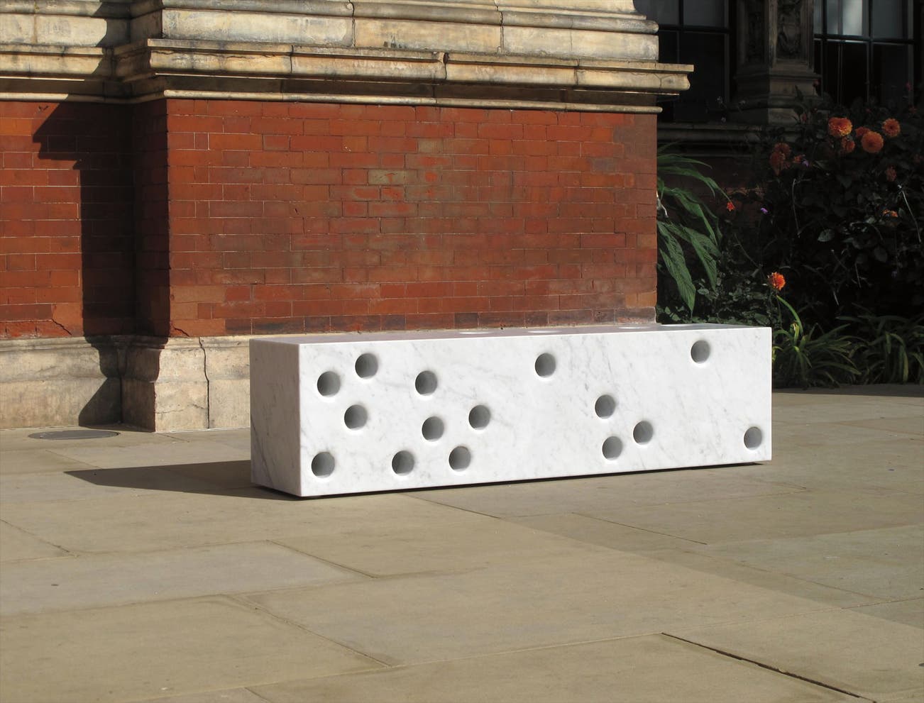 ‘Western Facade’ references the shrapnel damaged Aston Webb facade on the Exhibition Road elevation of The Victoria and Albert Museum caused by bombs dropped during the 1940 blitz. Holes