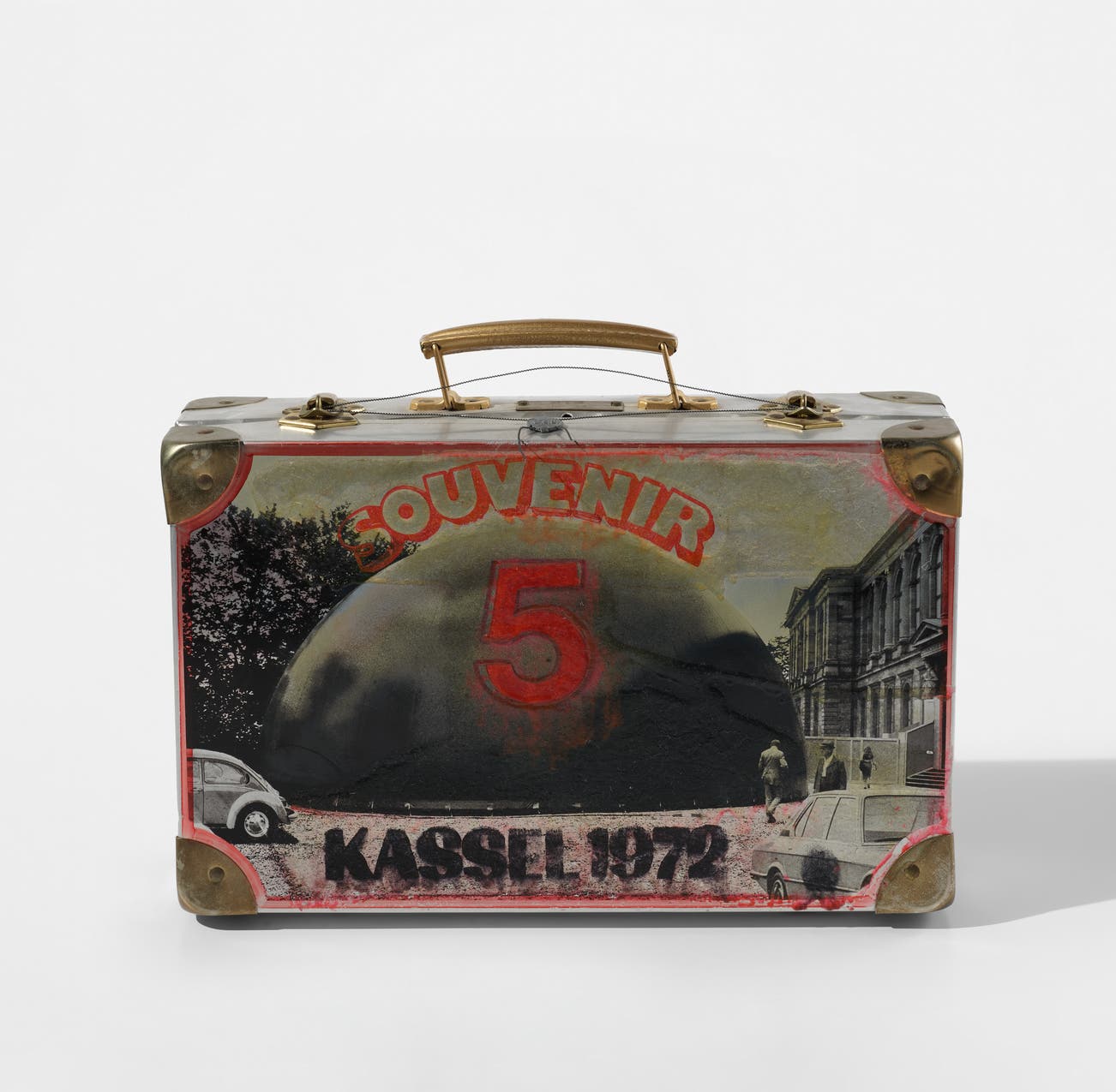 Incised with initial 'K' dated '73' and numbered '218' on a metal plaque affixed to the top of the suitcase, from a series of unique variants, published for Documenta 5, Kassel, Germany.