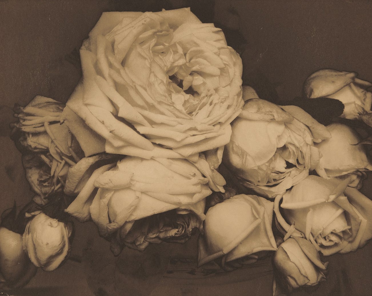 Heavy Roses, Voulangis, France, remains one of Steichen’s most celebrated images, yet early prints of it are scarce. The Museum of Modern Art, New York, has in its collection a palladium print believed to have been made close to the time of the negative. Three gelatin silver prints made by Steichen at various dates have appeared at auction, as well as several prints made much later by Rolf Petersen. It is believed that the present photograph is the only palladium print to appear at auction.