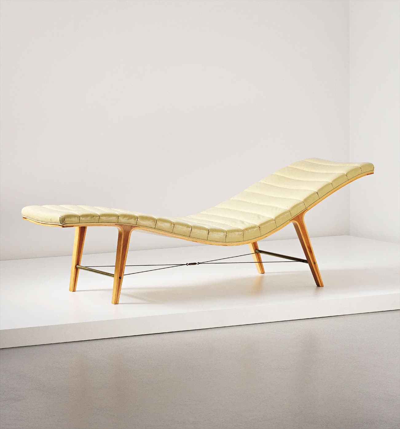 Bent laminated maple, cherry wood, tubular metal, steel wire, fabric.