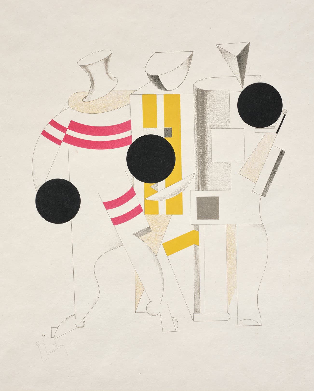 Sportsmänner, plate 6 from Figurinen, die Plastische Gestaltung der Elektro-Mechanischen Schau 'Sieg über die Sonne' (Sportsmen, plate 6 from Figurines, The Three-Dimensional Design of the Electro-Mechanical Show 'Victory over the Sun') (L.-K. 60, E. 66)