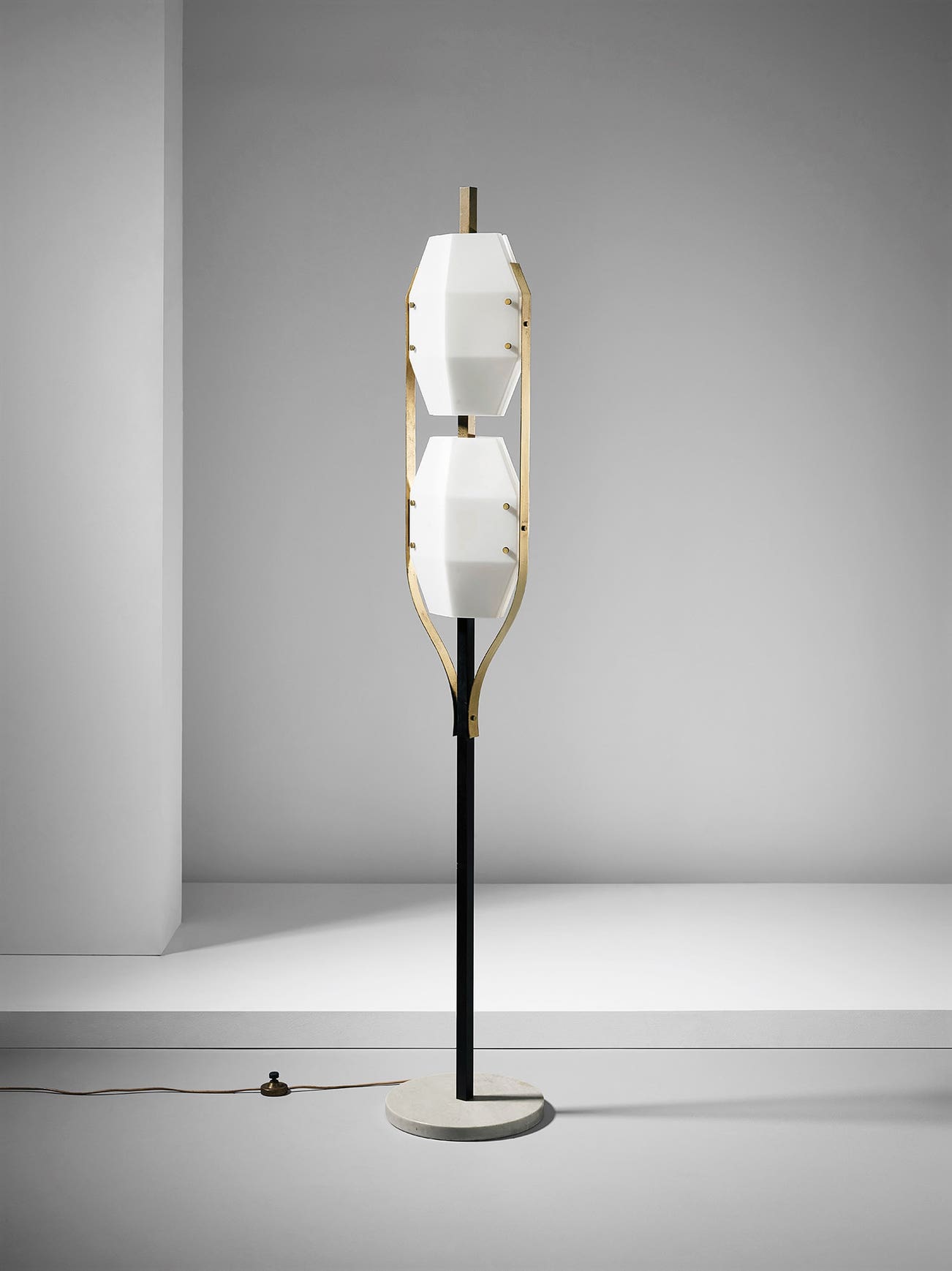 glass, brass, painted metal, marble