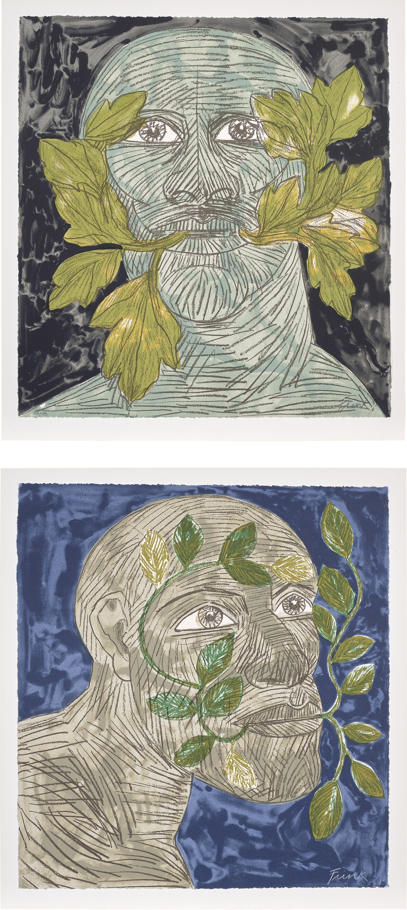 Green Man (Black) signed and numbered 33/70 in pencil, Green Man (Blue) signed in white crayon and numbered 13/70 in pencil (there were also 7 artist's proofs), co-published by the artist and Curwen Prints, Chilford (with their blindstamp), both framed.