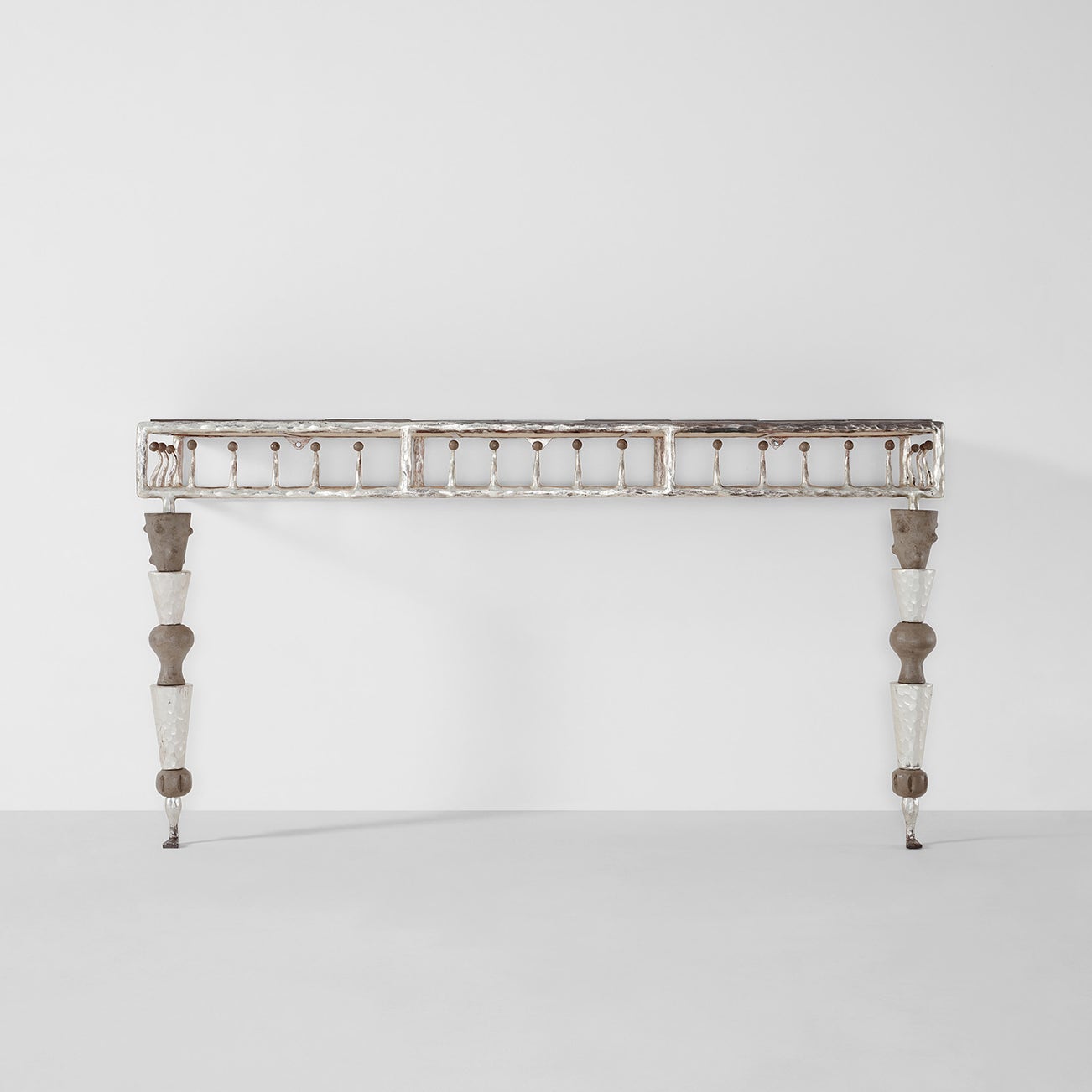 Gilded iron, terracotta, sandstone, silver hammered iron.