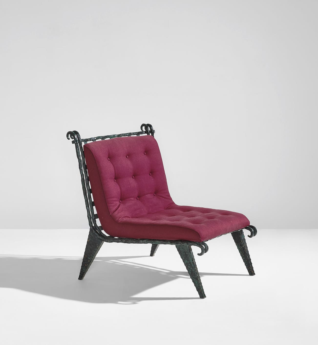 The present chair by Elizabeth Garouste and Mattia Bonetti was originally conceived for a private client of the Paris gallery Néotù, and according to Mattia Bonetti, probably less than five examples were ever produced. It was imported by Furniture of the Twentieth Century, a vibrant and influential showroom and fixture of the New York design scene which was founded in 1981 by Michael Steinberg and Benedicte Siroux and closed in 1991. The showroom initially represented Andrée Putnam’s company, Ecart International, in the American market. Alongside these re-editioned works by U.A.M. modernists, they also offered other re-editions of iconic 20th century designs by companies such as BD, as well as contemporary design by Italian manufacturers such as Driade, Zanotta and Bieffeplast. In the 1980s, Furniture of the 20th Century championed many of the designers of their Parisian counterparts, such as Néotù and Galerie en attendant les barbares. Notably, they were the first American purveyors of the Memphis Group. They soon began to offer a wide array of material, including furniture designed by luminaries across multiple artistic disciplines such as Philippe Starck, Rei Kawakubo, Robert Mapplethorpe and Robert Wilson. This prescient mix presented an inclusive view of the scope of 20th century design that was reflected by the eclectic, imaginative and historically informed interiors that Michael’s wife, Suzanne Slesin, championed in the world of publishing, and which Suzanne and Michael manifested in their extensively published homes over more than four decades. The present chair has remained in their collection since the 1980s.