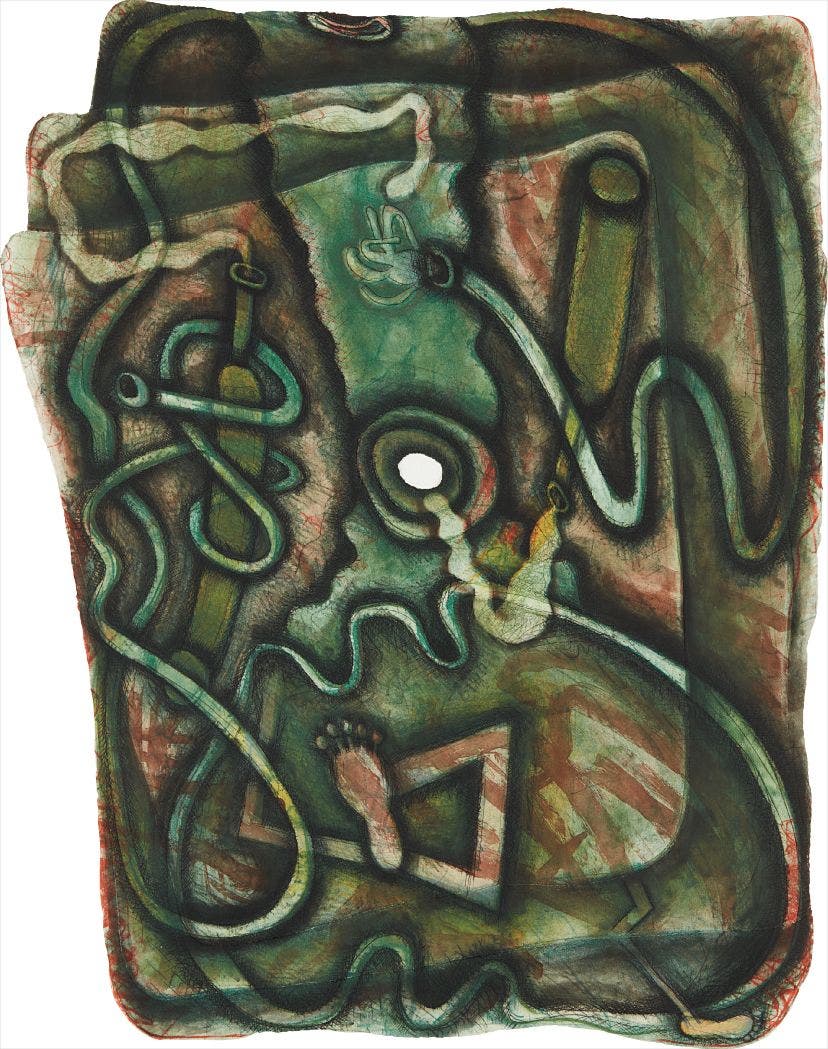 Lithograph in colors, on shaped Somerset paper, the full sheet.