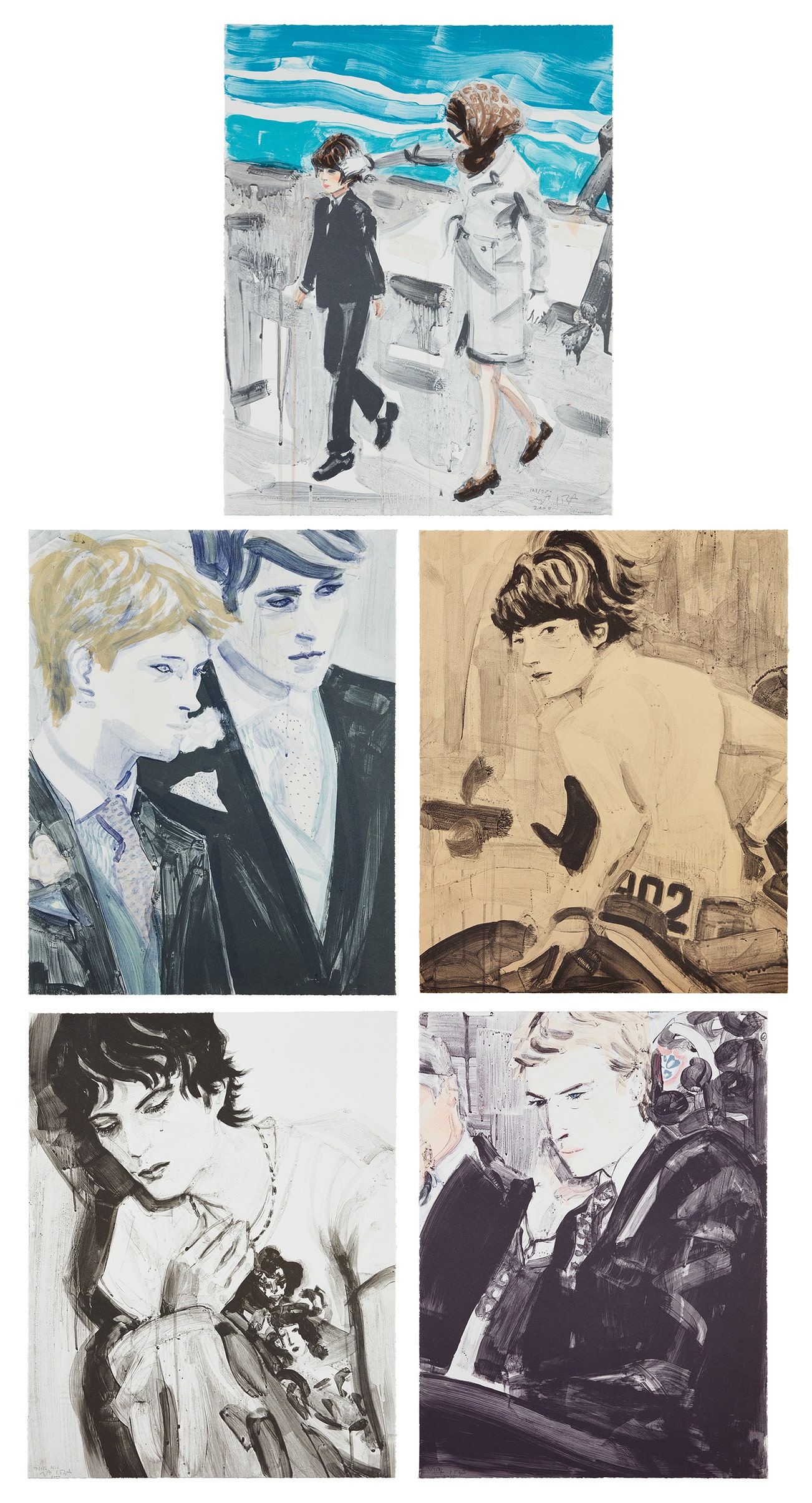 The complete set of five lithographs in colors, on wove paper, the full sheets.