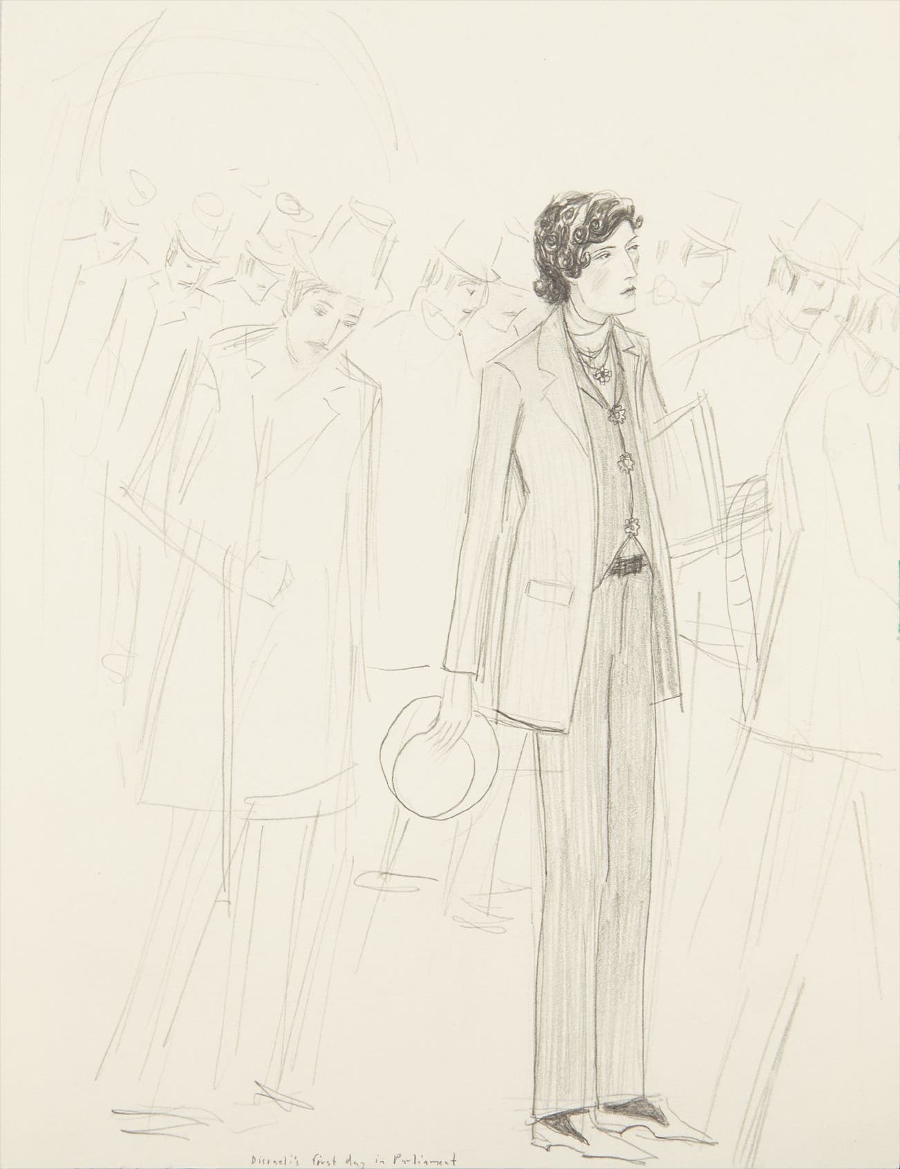 Signed, titled, dated and inscribed "Disraeli's First Day in Parliament Elizabeth Peyton 1998 EP 388" on the reverse.