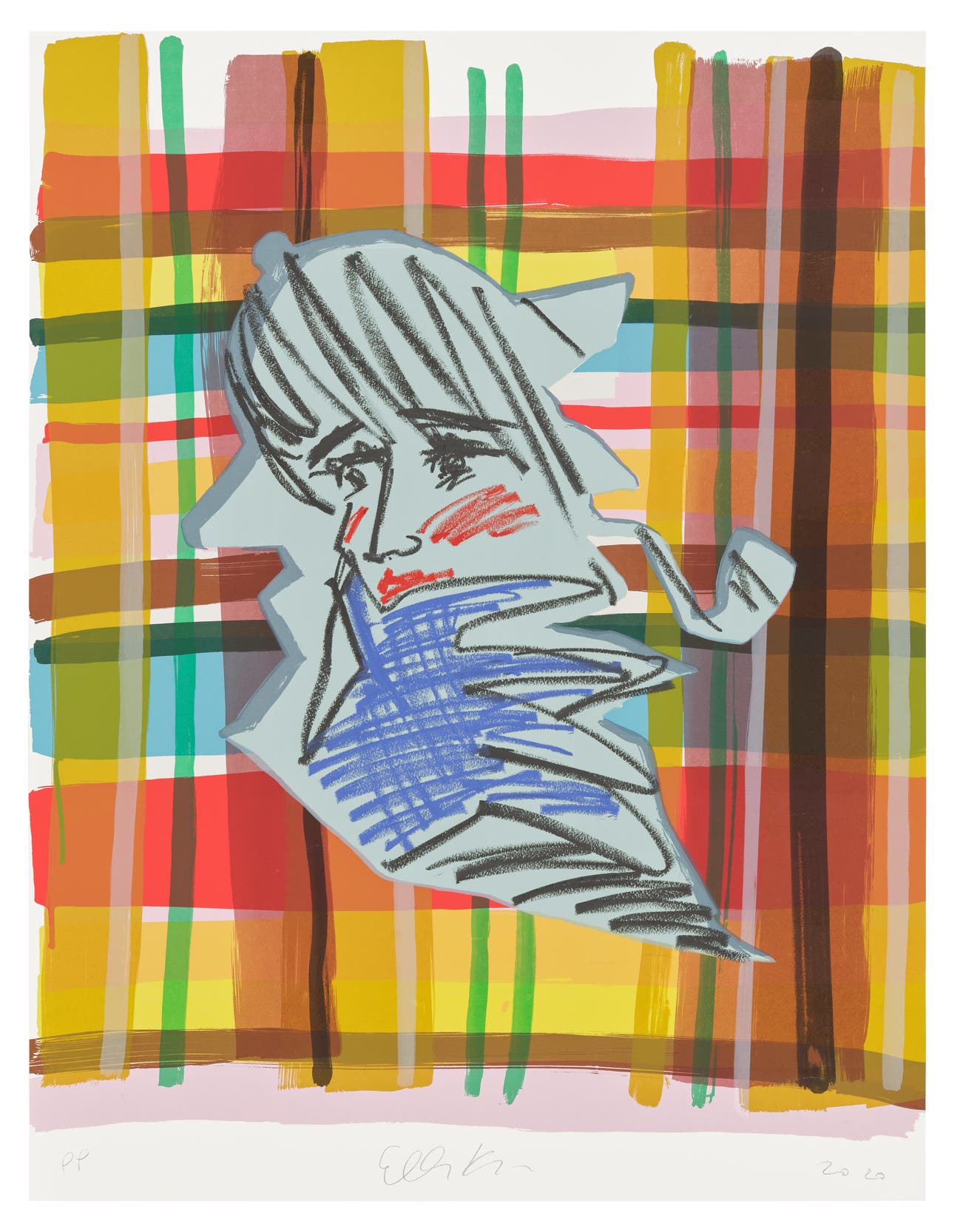 Screenprint in colors with hand-coloring in pastel, on wove paper, the full sheet.