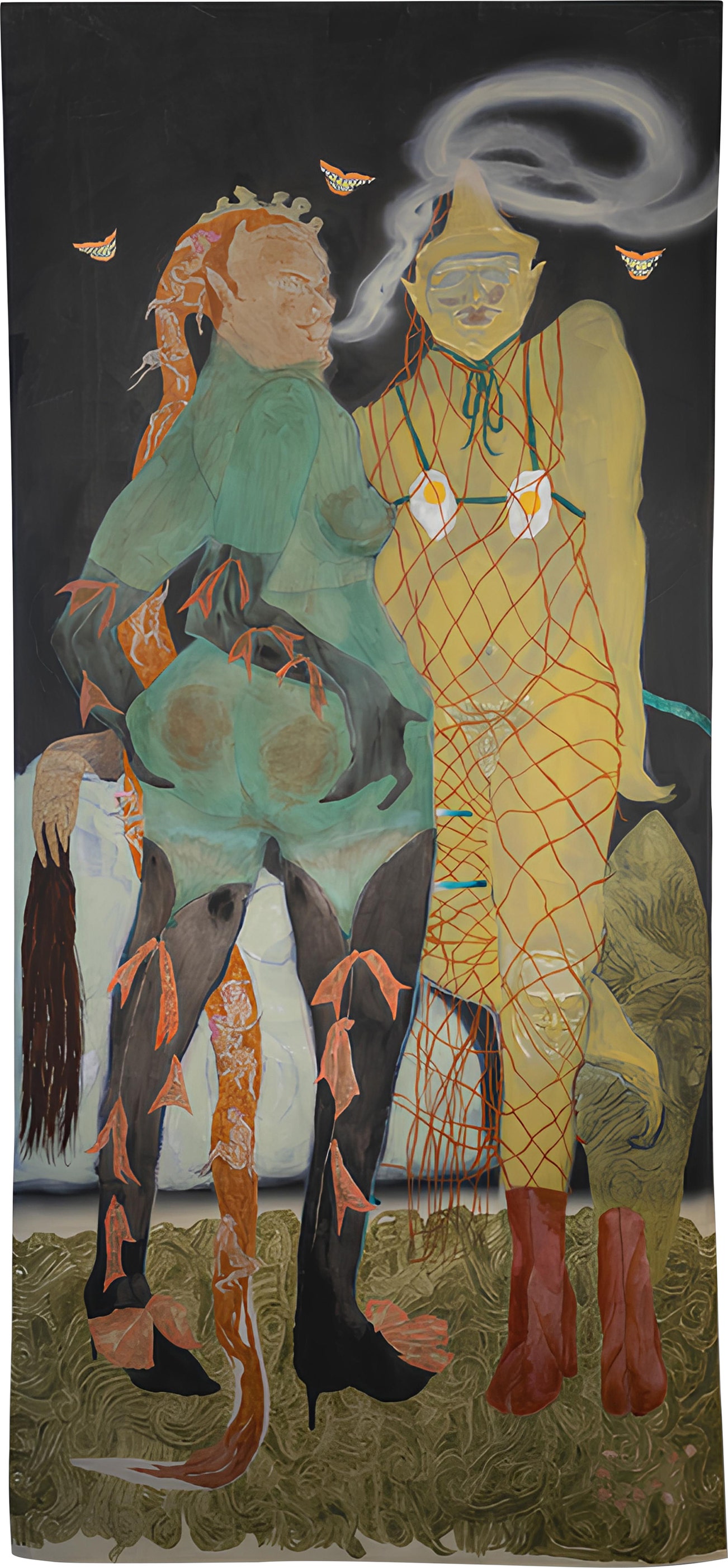 acrylic and oil on unstretched canvas