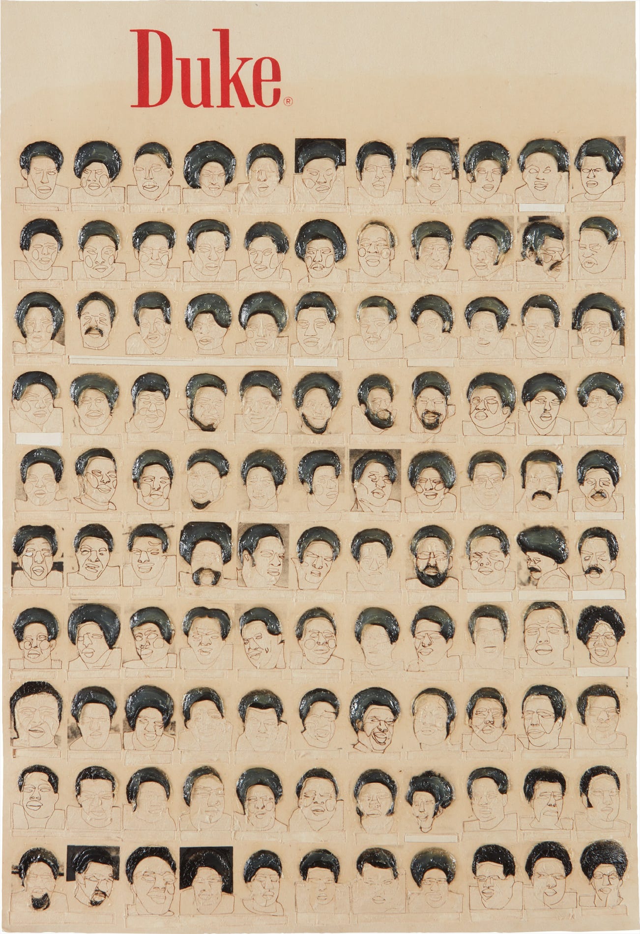 Photogravure in colors with laser-cutting, paper collage and hair pomade, on wove paper, the full sheet.
