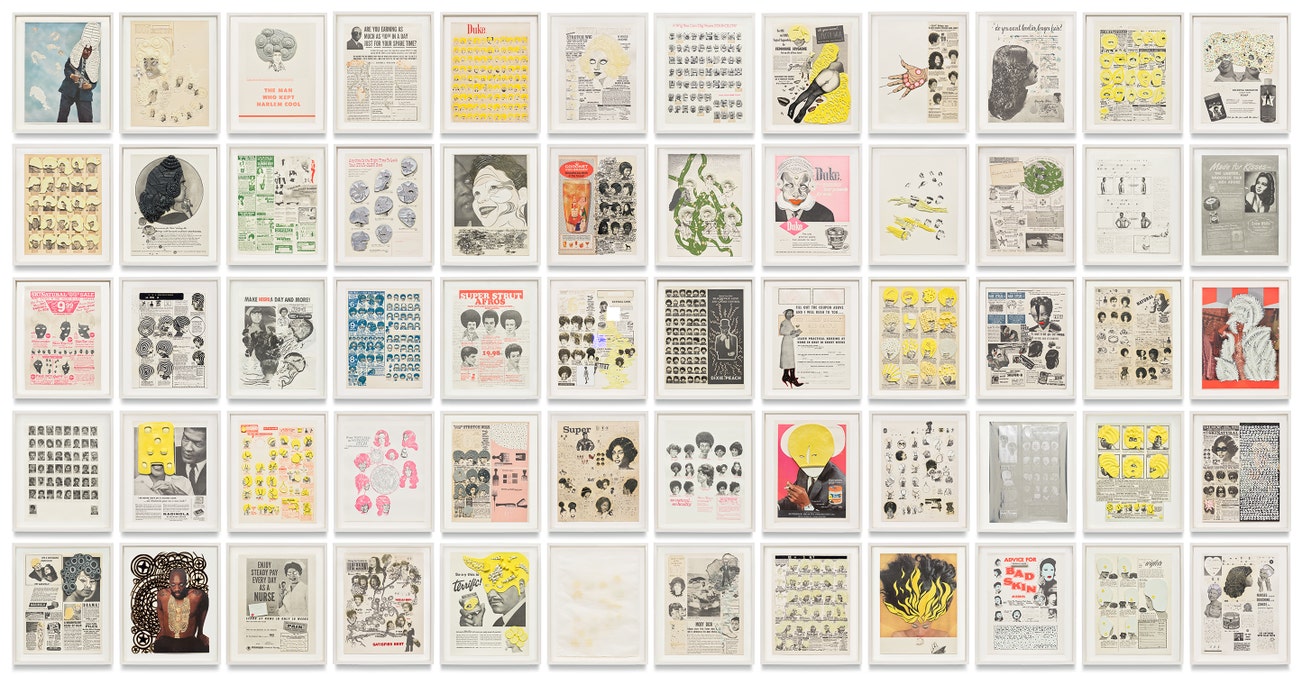 The complete set of 60 prints with aquatint, drypoint, photogravure, spit-bite, lithograph, screenprint, embossing, tattoo machine engraving, laser-cutting, collage, crystals, cut paper, enamel, glitter, gold leaf, gouache, graphite, oil, plasticine, polymer medium, pomade, toy eyeballs, watercolor and velvet, on various papers, the full sheets.