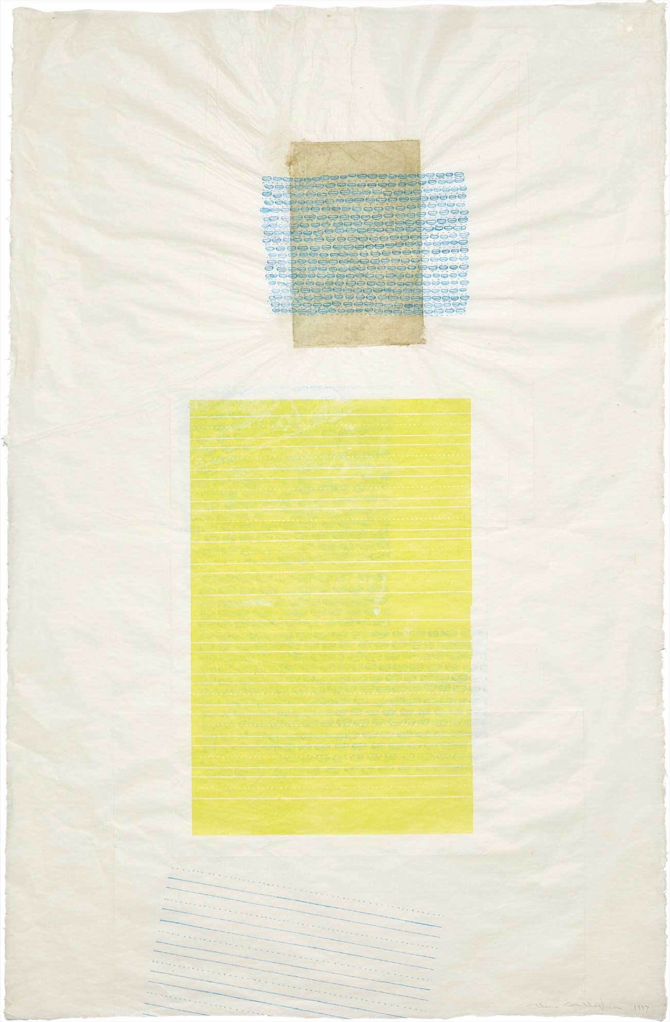 Monoprint in colors, comprised of watercolor and ink, on misu paper, the full sheet,