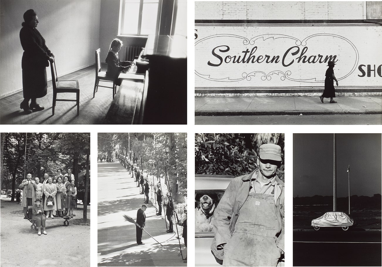 Yale/New Haven, 1955; Parade Group/Paris, 1951; Inspection Guards/Teheran, 1967; Geese/Hungary, 1964; Monkey Paw/St. Tropez, 1968; Confessional/Czestochowa, Poland, 1964; Piano Lesson/Odessa, 1957; Waves/Brighton, 1956; Southern Charm/Alabama, 1955; Diana/New York, 1949; Beach Group/Sylt, West Germany, 1968; Lost Persons/Pasadena, 1963; Man and Dog/South Carolina, 1962; Soldier/New Jersey, 1951; Car and Poles/Rome, 1965