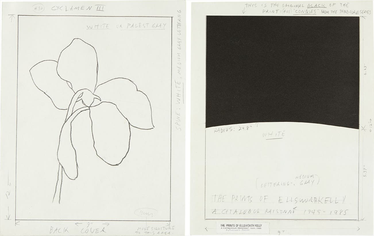 Characterized by an extreme economy of means, the works that comprise Ellsworth Kelly’s highly-regarded practice reveal the artist’s keen interest in formal issues such as ground/foreground, planarity, shape, and line. This particular drawing is uniquely notable both as a brilliant juxtaposition of naturalistic plant drawing and hard edged abstraction, and also as the maquette for the cover of the original catalogue raisonné of Kelly’s prints. Combining hand-drawn reinvestigations of two prints, Cyclamen III and Conques, which are both actually reinterpretations of an earlier drawing and painting respectively, Untitled from 1987 is both a fully realized object in its own right and a fascinating glimpse into the inner workings of one of the most important American artists of the post-war era.