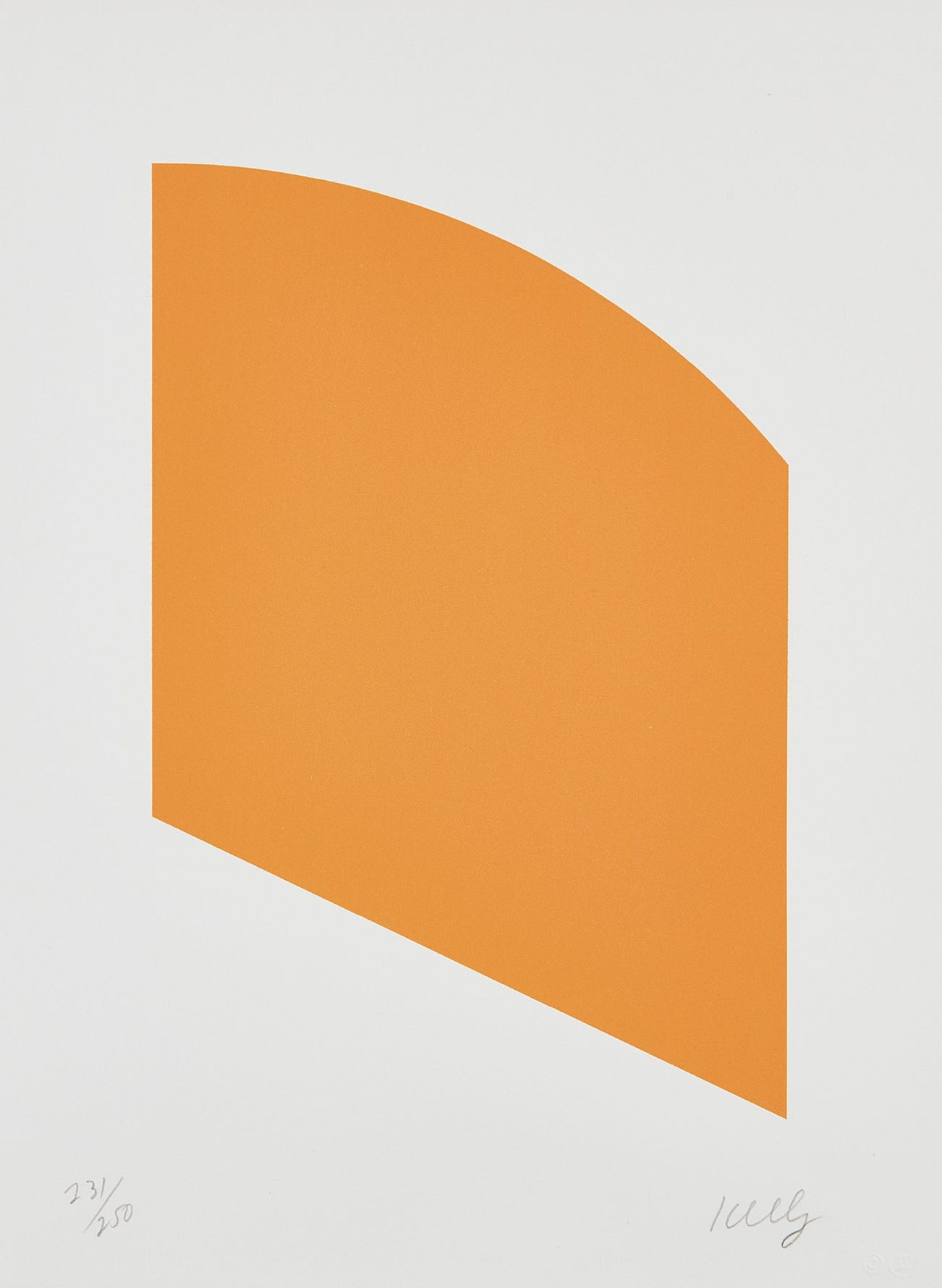 Lithograph in orange, on Rives BFK paper, with full margins.