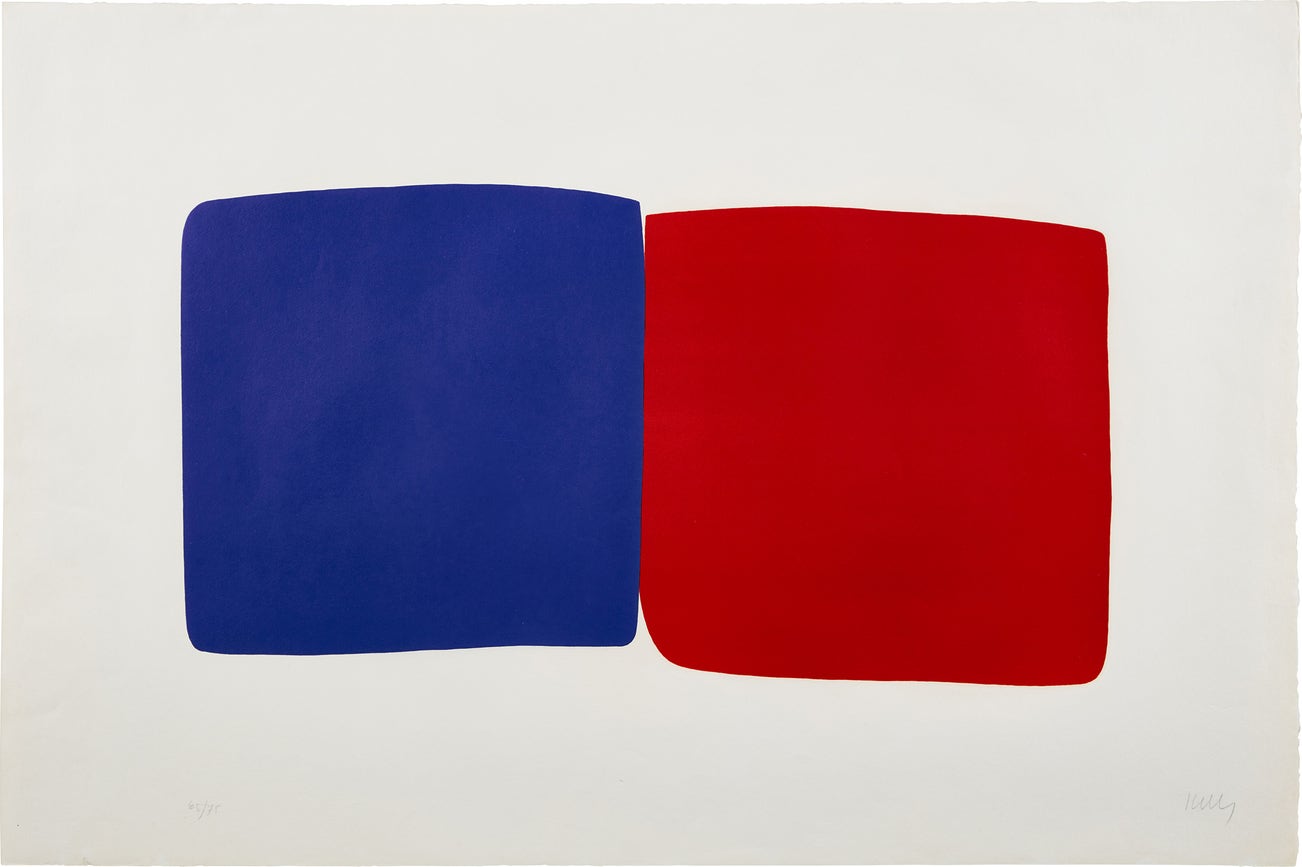 American | B. 1923 D. 2015Acting as a vital contributor to the Abstract movement, Ellsworth Kelly focused on color and composition. Becoming inspired by ornithology and the bold coloring of birds, Kelly used a two or three pigment color palette — painted flatly and geometrically — on his canvases. While living in Paris, the artist used Monet's late works as a base for experimenting with expressionism and serial work