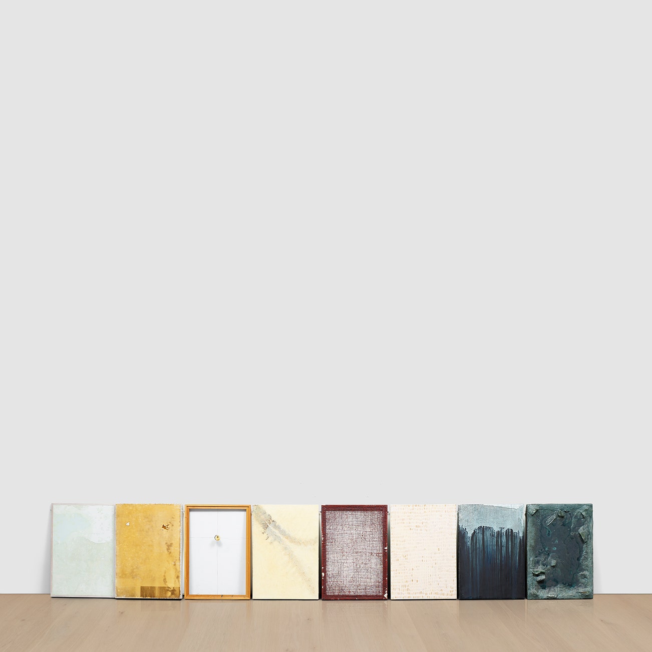 mixed media and paint on glass, wood and plaster, in 8 parts
