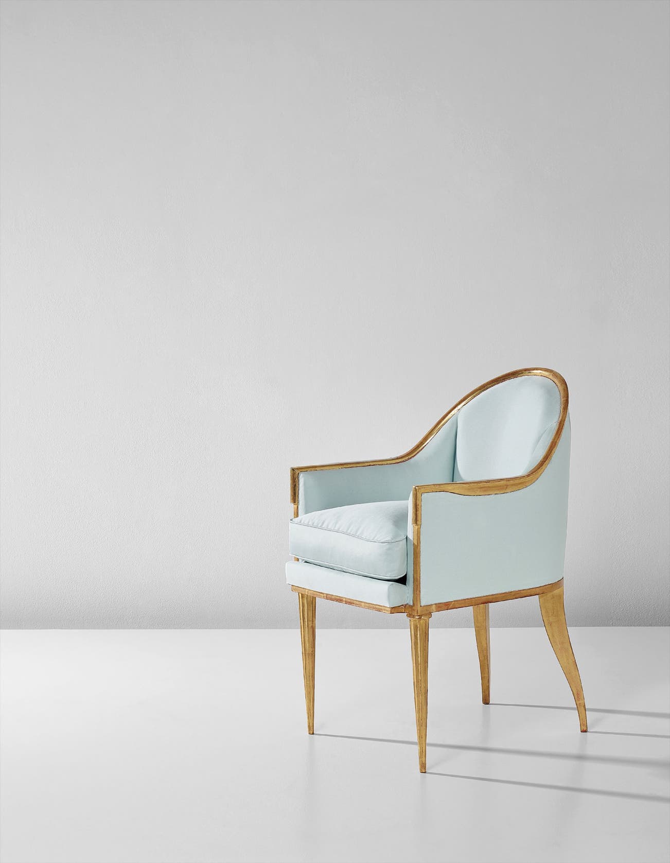 The drawing for the present armchair design is recorded in the reference album 'Sièges, lits, divans, tables, bureaux, meubles', (inventory number 2002. 18. 15) held by the Ruhlmann Archives at the Musée des Années Trente, Boulogne Billancourt, Paris.