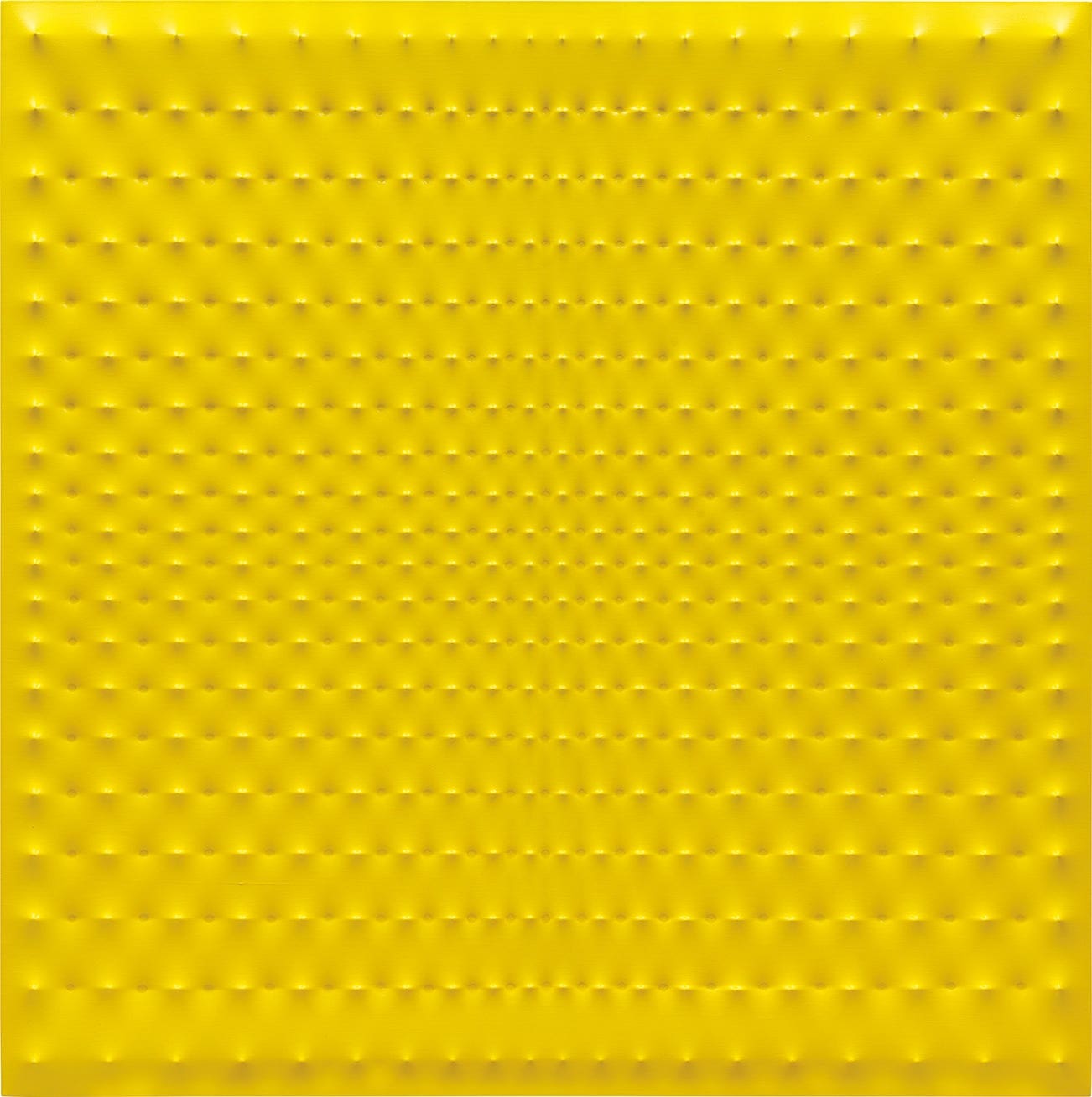 Castellani is 'remembered as one of the people that changed the language of art…he made the hand of the artist non-evident, and the work was the work itself. He was one of the few figures that developed a new language, a language that didn’t exist before, and to me that’s a sign of somebody that has an impact that resonates' (Emilio Steinberger, quoted in Henri Neuendorf, ‘Italian Avant-Garde Painter Enrico Castellani’ Artnet, 4 December 2017, online). Superficie Gialla Tokyo no. 2, with its monochrome expanse of colour and regular sequential patterns of alternately ascending and descending points and protrusions, manipulates the viewer’s perception of space and time, creating a tension that stretches beyond the tautness of the material and infiltrates our contemplation of spatiality and infinity. Castellani realises, in his own words, an ‘indefinitely repeatable rhythm…necessary in order to give the works themselves the concreteness of the infinite’ which, therefore, allows the work to transgress time in order to satisfy a ‘spiritual need’ (Enrico Castellani, 'Continuitá e nuovo', Azimuth, Milan, no. 2, 1960, n.p.).