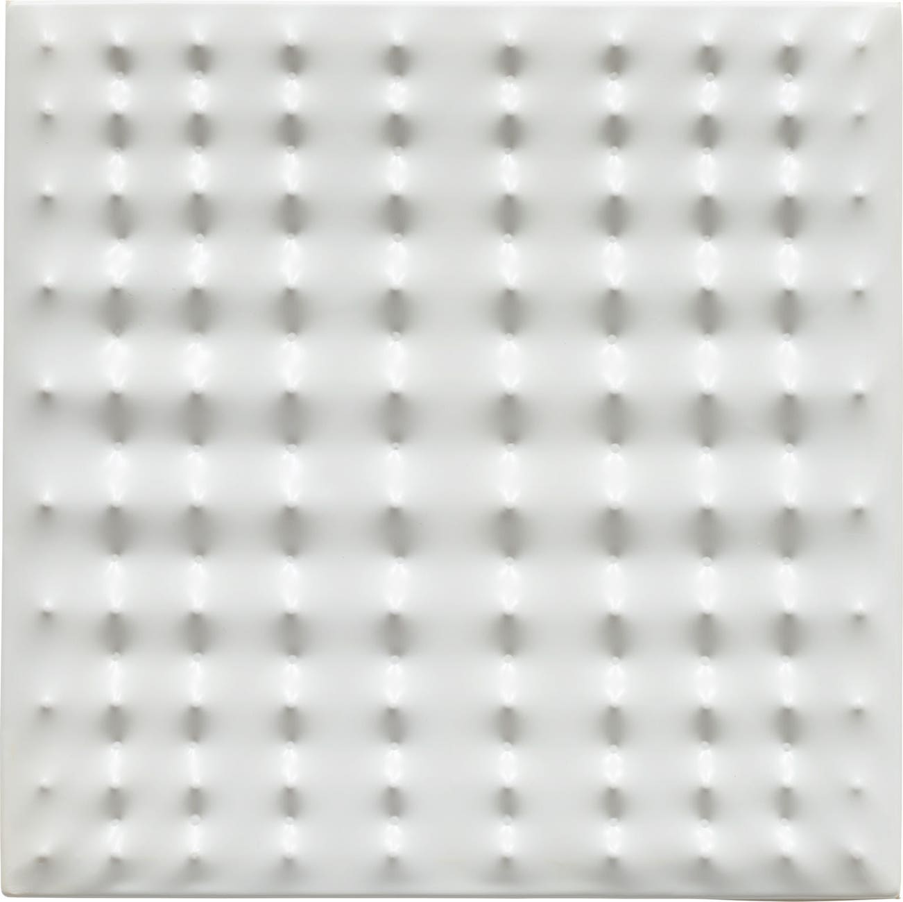 Thermoformed white plastic multiple, with accompanying Enrico Castellani Pittore book by Vincenzo Agnetti, contained in the original cardboard box.