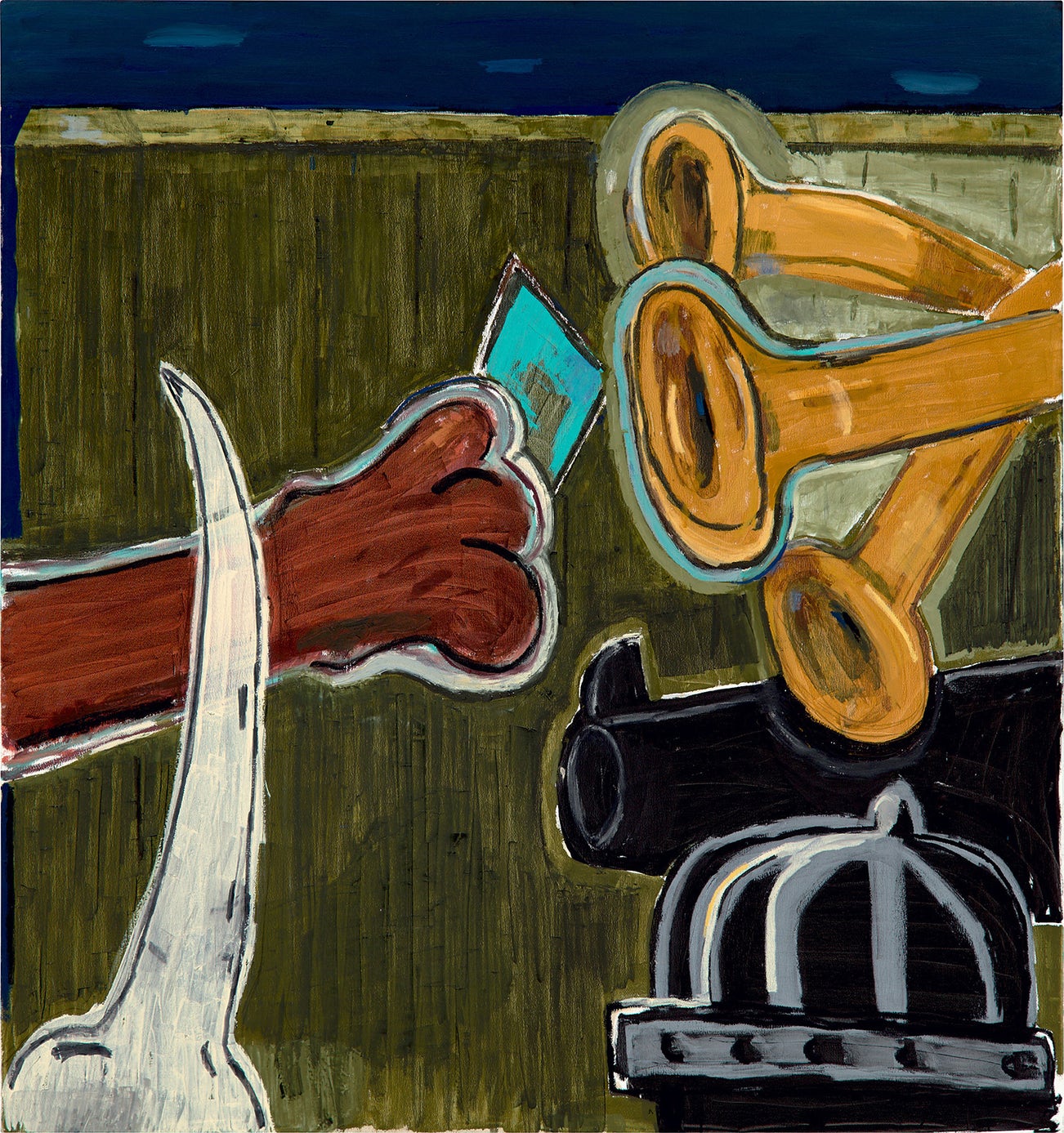 signed, titled and dated "UNTITLED: EVENING SHAKEDOWN, 2015, Enrico Riley" on the overlap