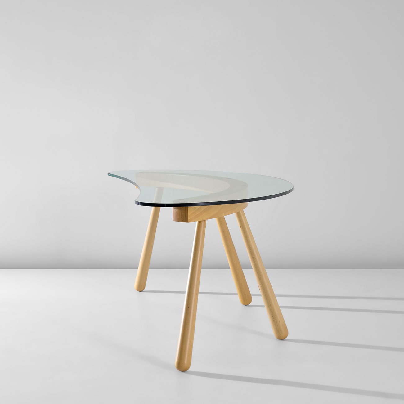 Beech, glass, stainless steel.