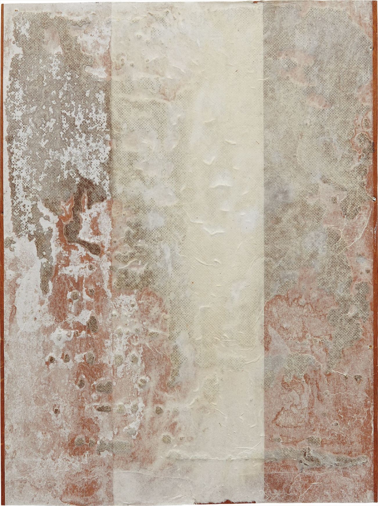 emulsion, found surface and Kozo rice paper on panel